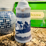 What a pleasure it would be to drink coffee out of this beautiful Blue Willow thermos. Made of enamel with the classic blue and white pattern. Screw top that tightens to keep your beverage nice and hot for a long time. Perfect for the all day coffee drinker or the Blue Willow lover. A really fun and rare find!