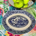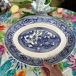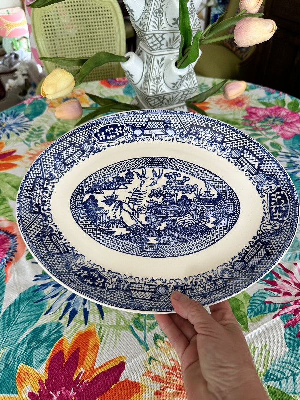 Vintage Blue Willow Oval Platter, USA Pottery, Blue and White Chinoiserie