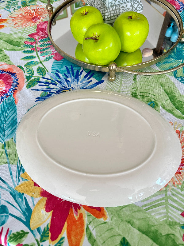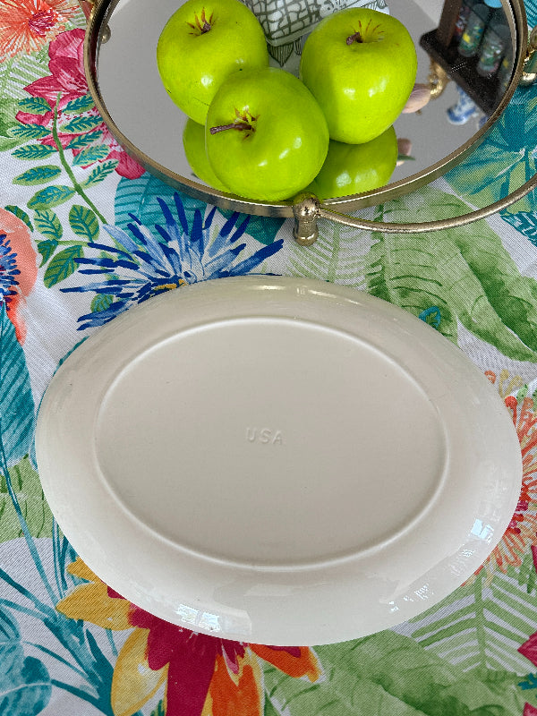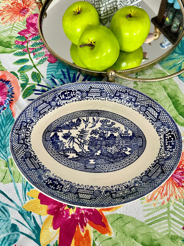 This smaller oval serving platter has the traditional Blue Willow design. Stamped USA on the back. Perfect for a plate wall or to display with your other Willow china. Serve your favorite small desserts or use for a charcuterie board. Great vintage condition no chips or cracks.