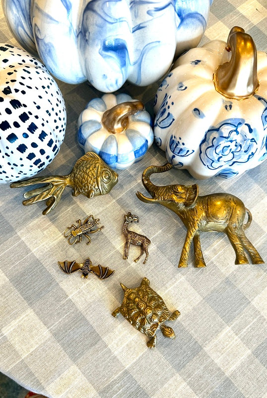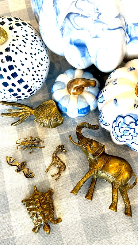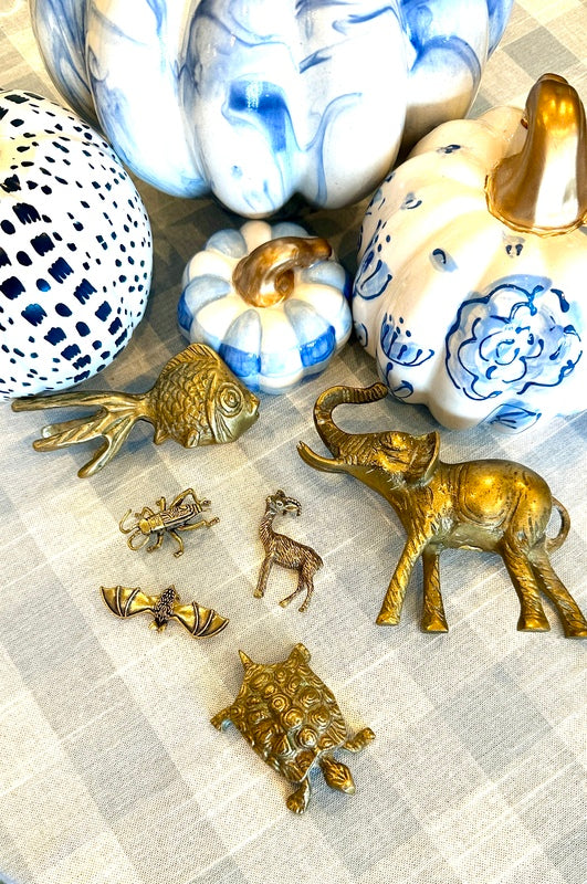 Explore our enchanting collection of Brass Animal Figurines, featuring a delightful variety including a bat, cricket, goat, fish, turtle, and elephant. Each intricately crafted piece showcases unique details and artistry, making them perfect for home decor or as thoughtful gifts. Add a whimsical touch to your space with these charming and timeless brass figurines! SOLD SEPARATELY