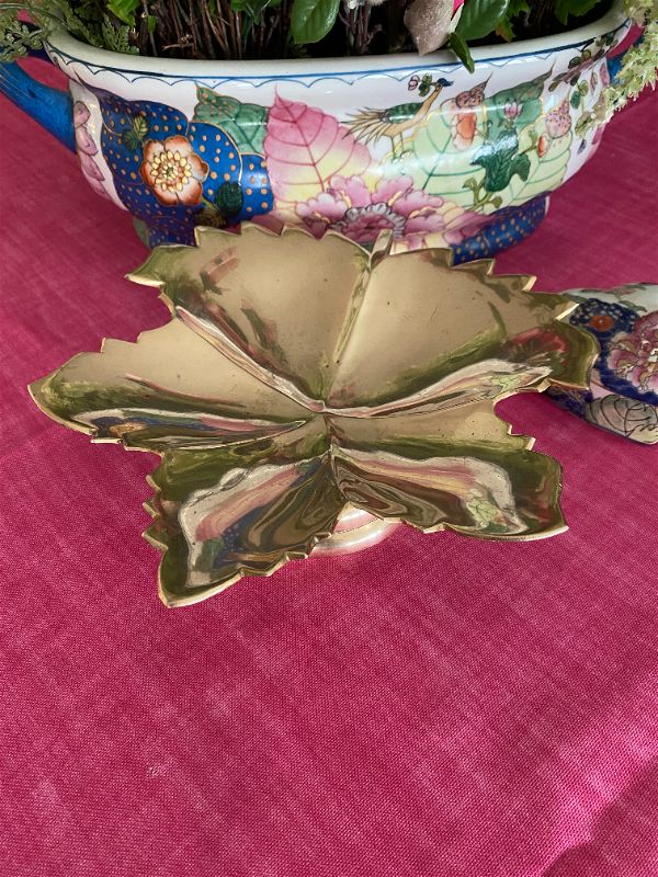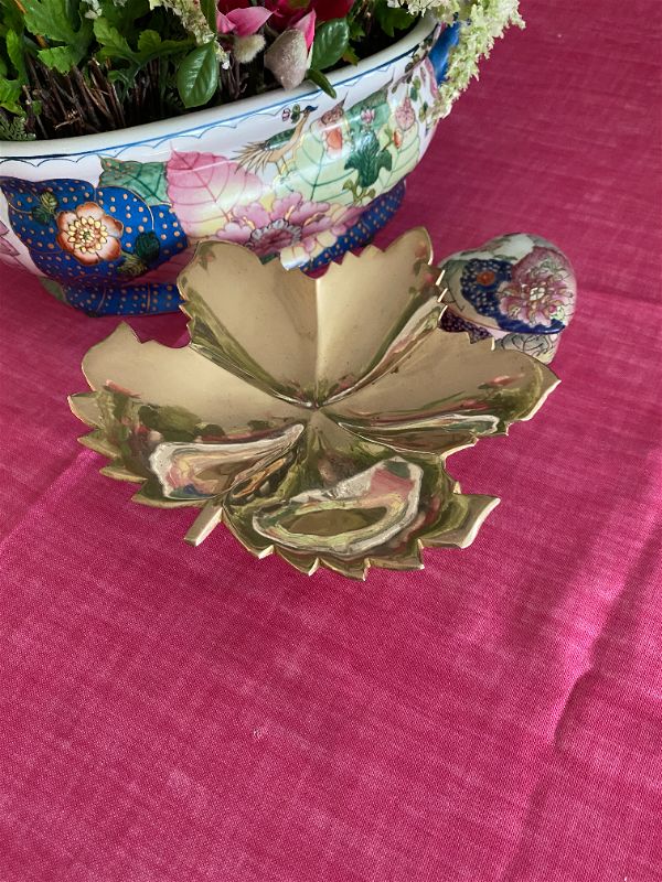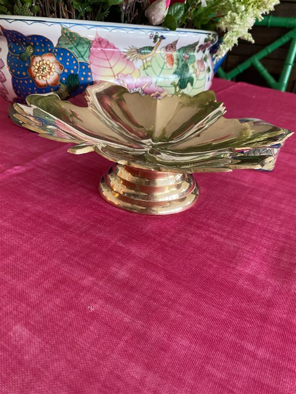 Vintage Brass Leaf Pedestal Dish made in India