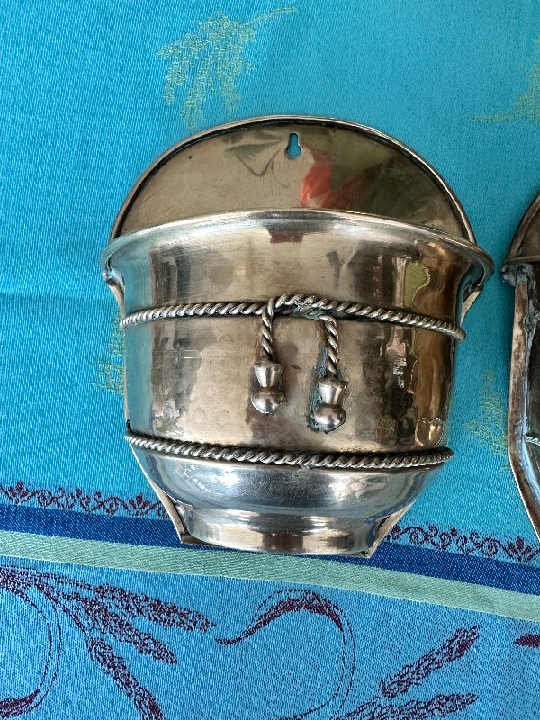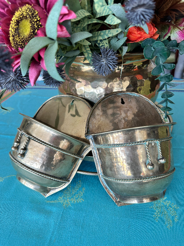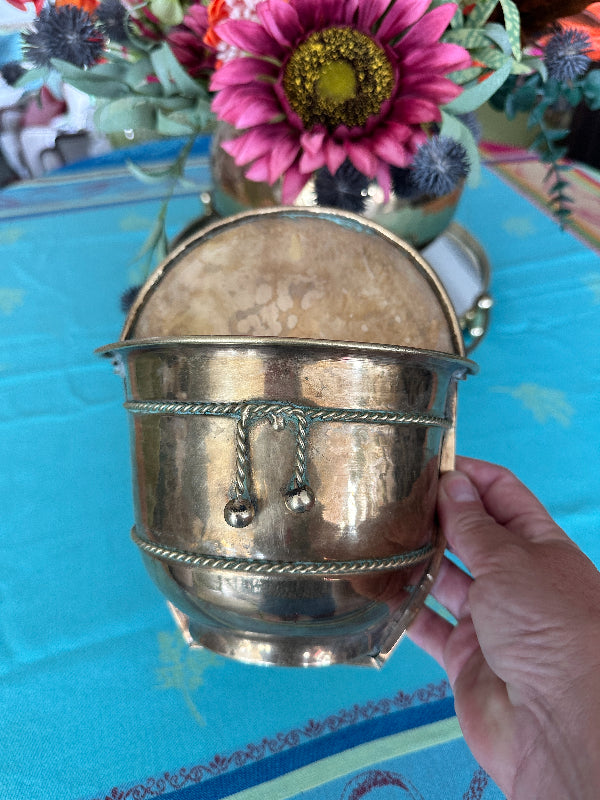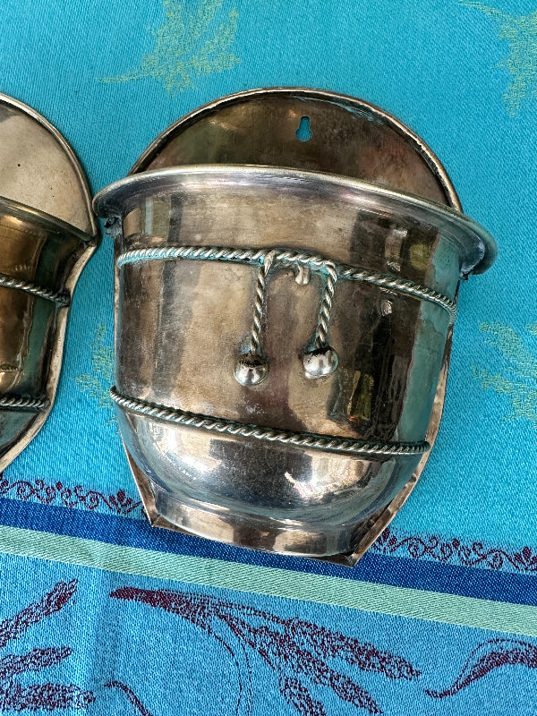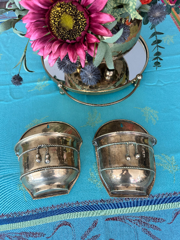 Brass Planter, Wall Mount, Rope Detail, 2 Available