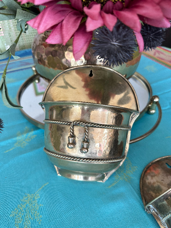 Make your space sparkle with this amazing brass wall mounted planter. Great for faux florals or your favorite plant. Perfect for a porch or patio. Add it to a wall in your bedroom closet and store things like bels, hats, scarves or socks. Use it in the bathroom and add toiletries or rolled up wash clothes. I love thinking out of the box for making your vintage finds functional.