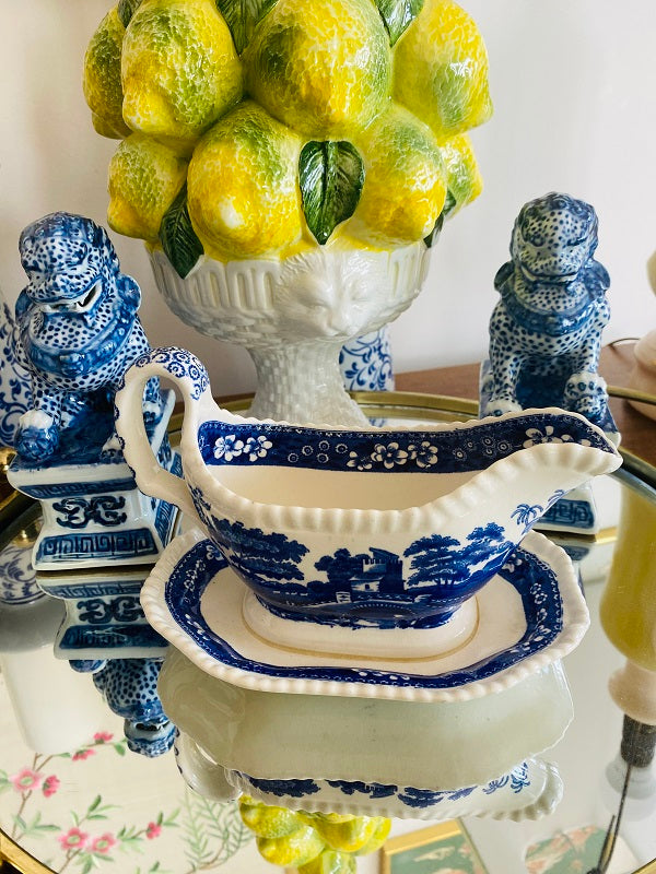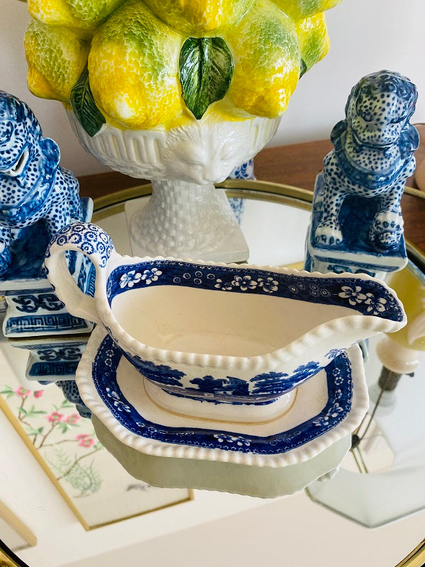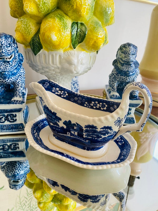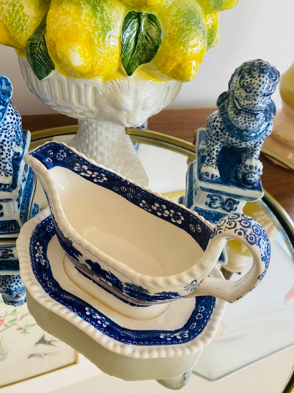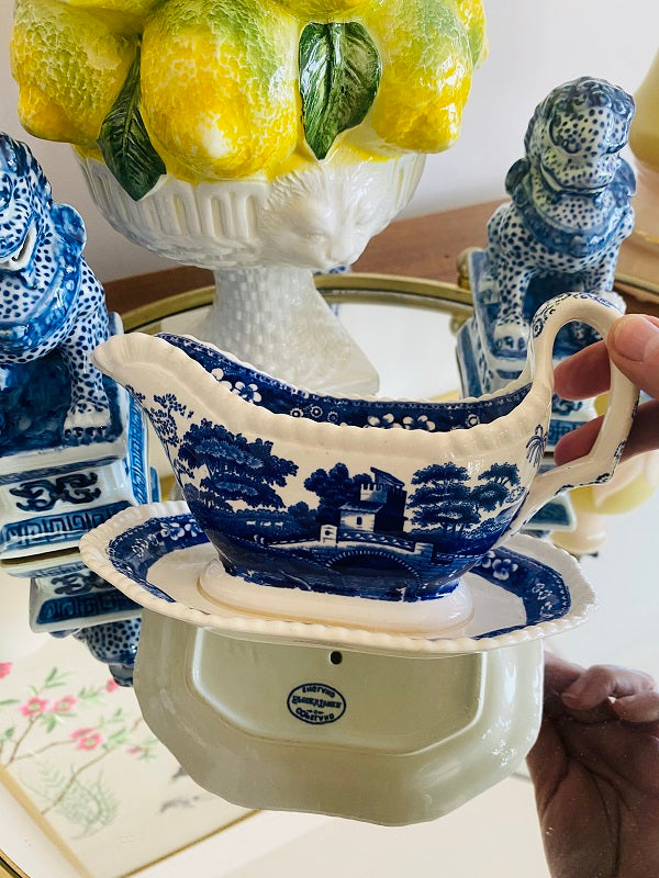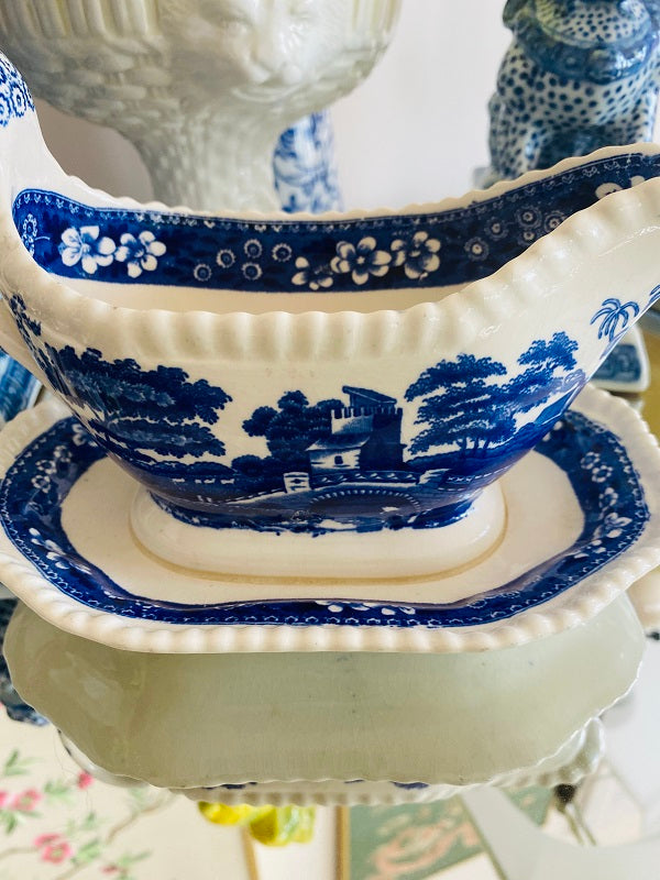 Vintage Blue and White Chinoiserie Copeland Spode's Tower Gravy Boat Spode China