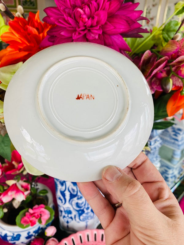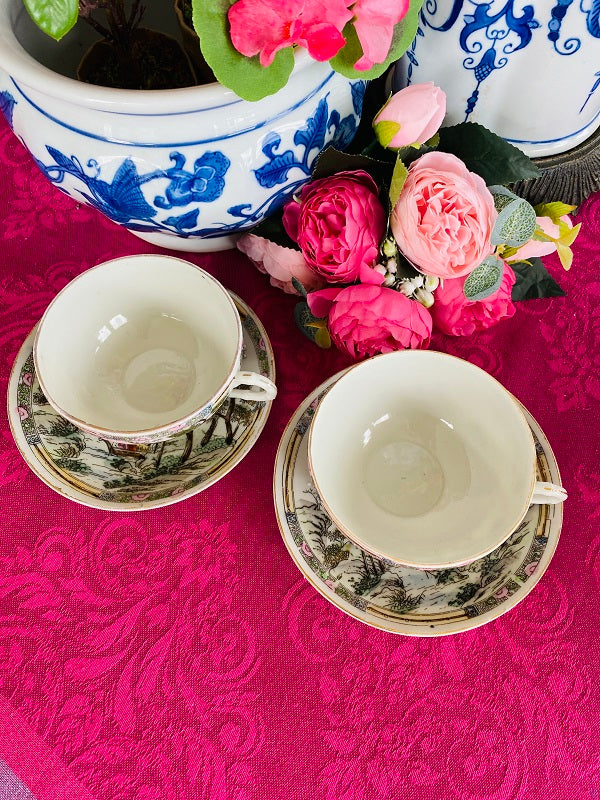 Rose Medallion Teacup and Saucer Hand Painted Stamped Japan on Bottom