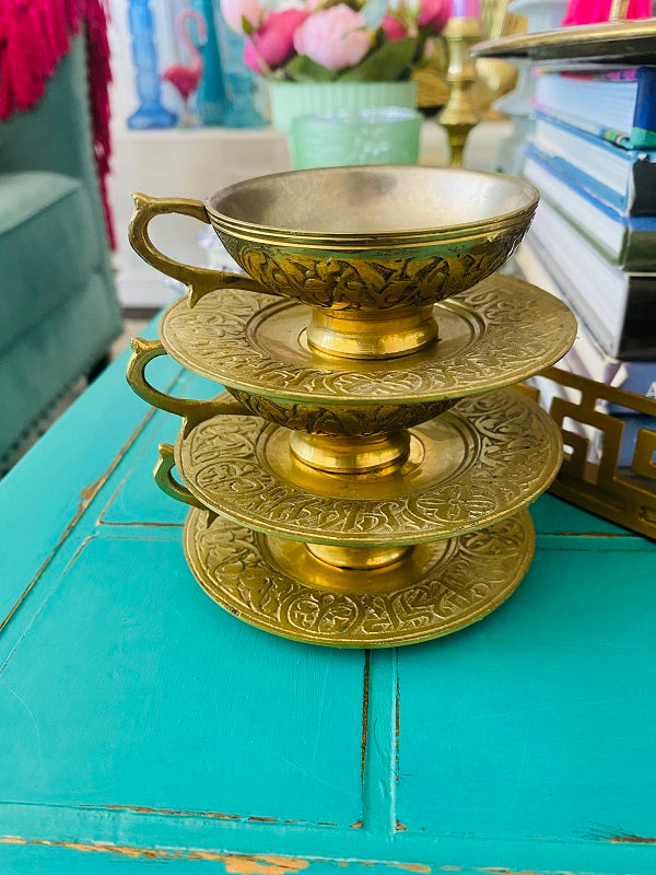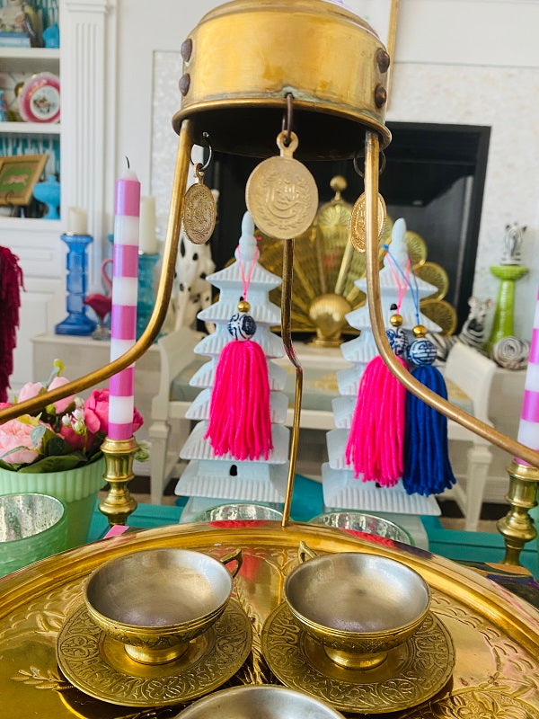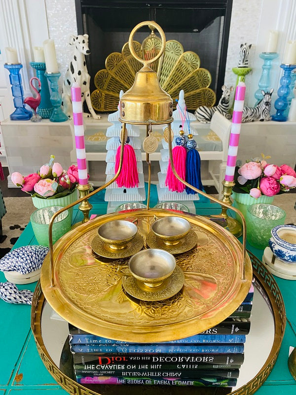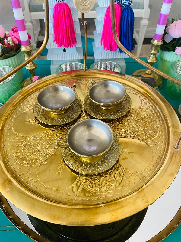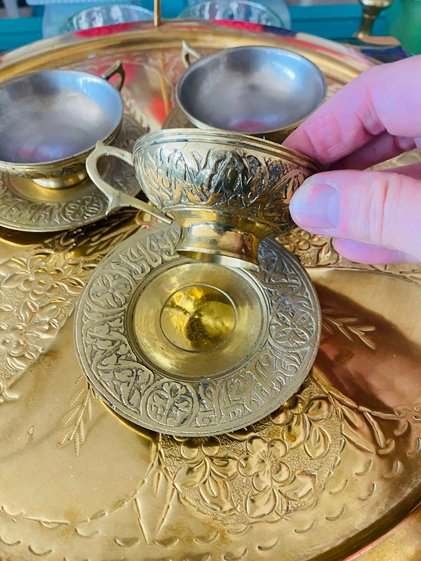 Vintage Rare Moroccan Brass Tea Tray with Handle (teacups and saucers NOT included)