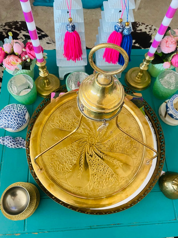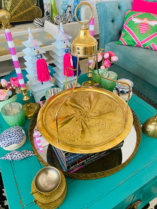 Vintage Rare Moroccan Brass Tea Tray with Handle