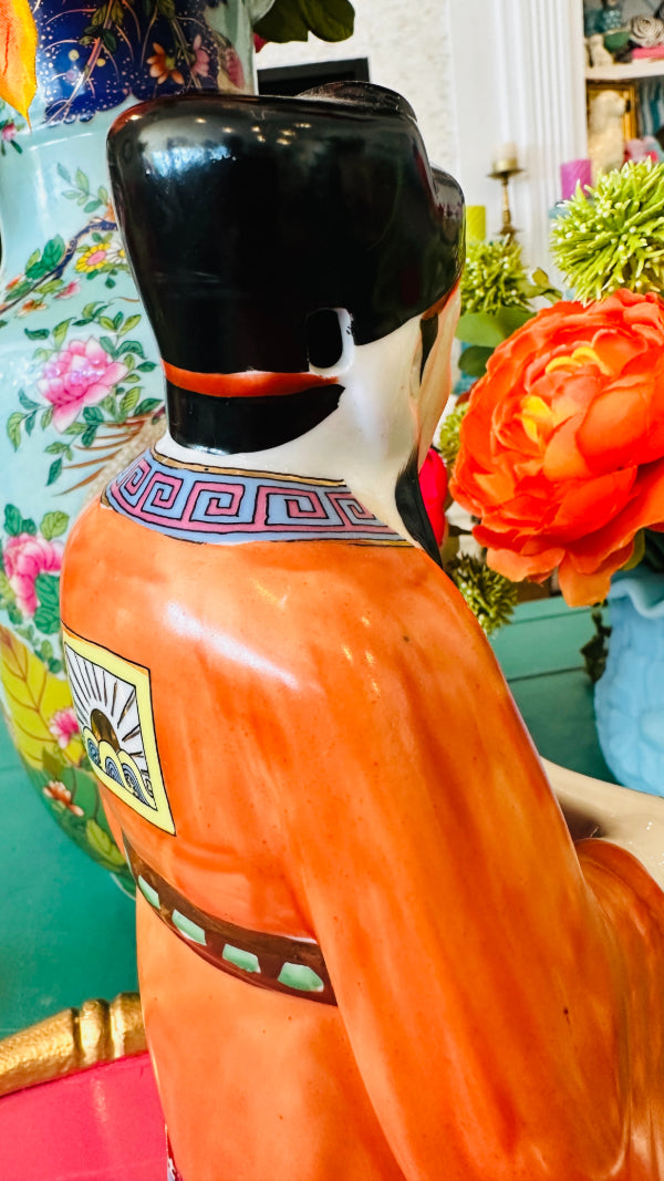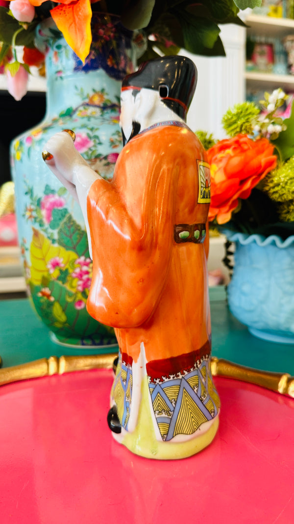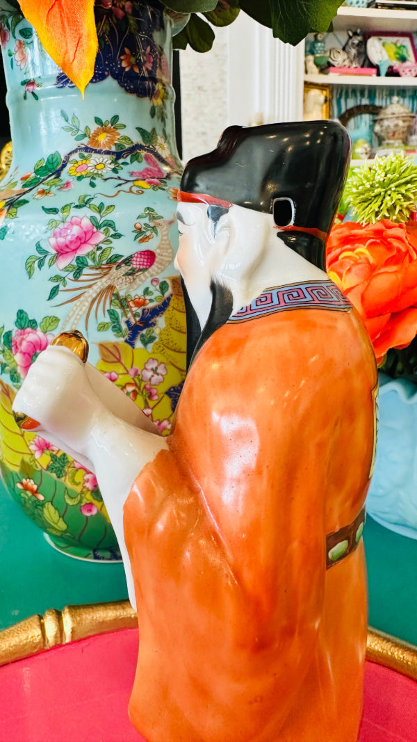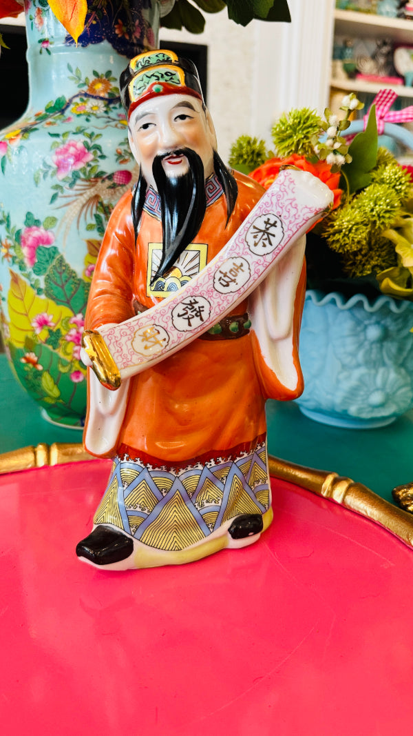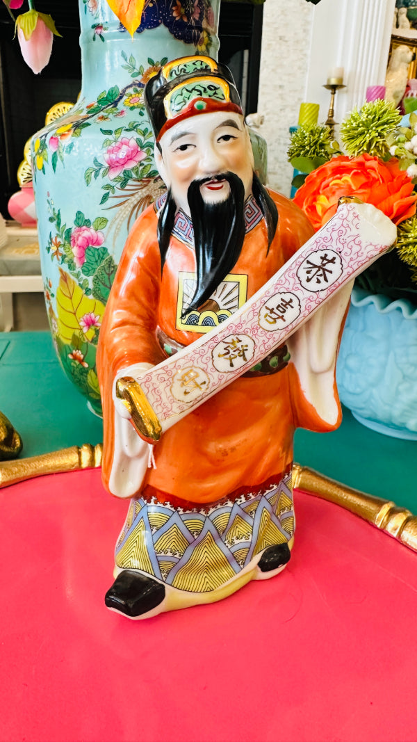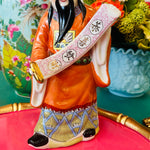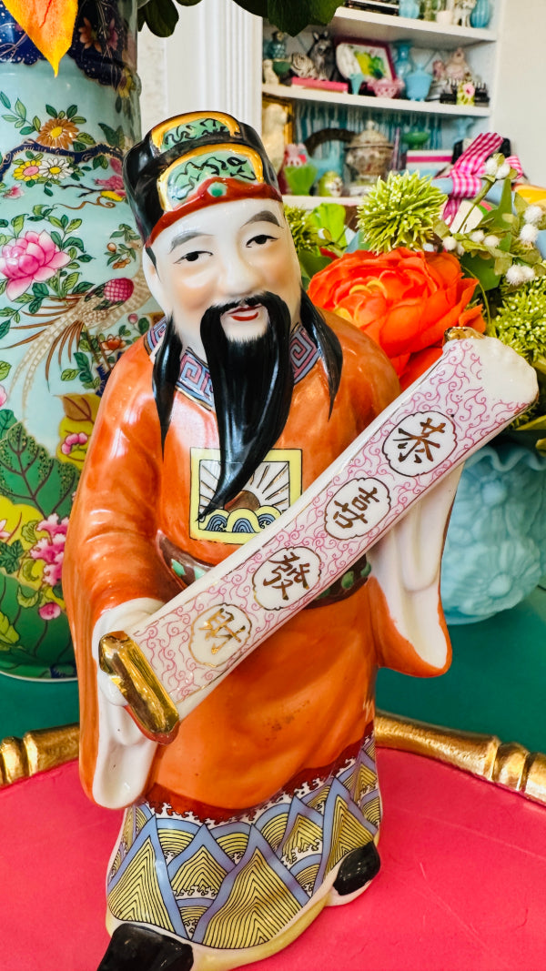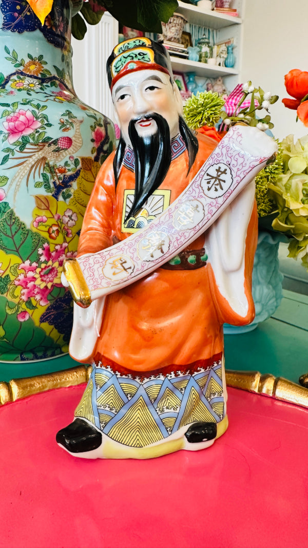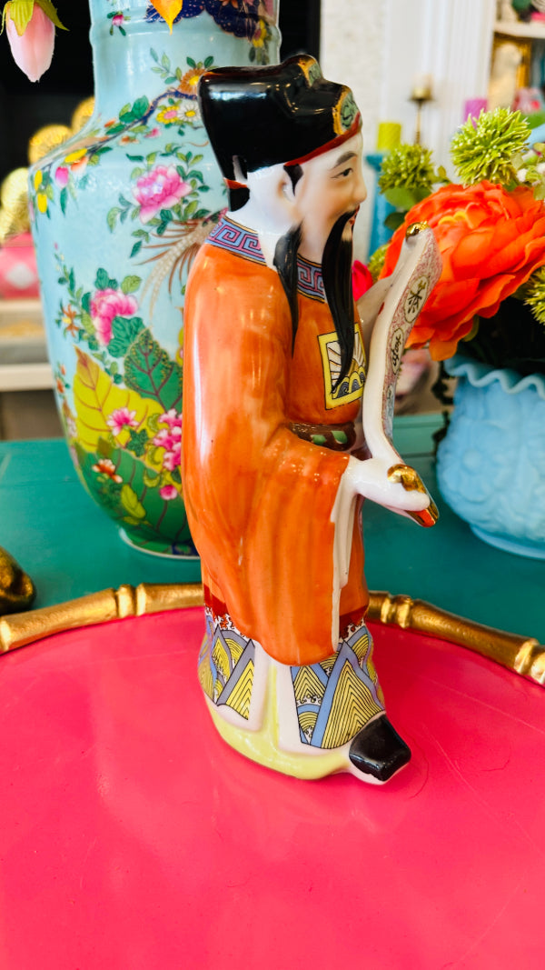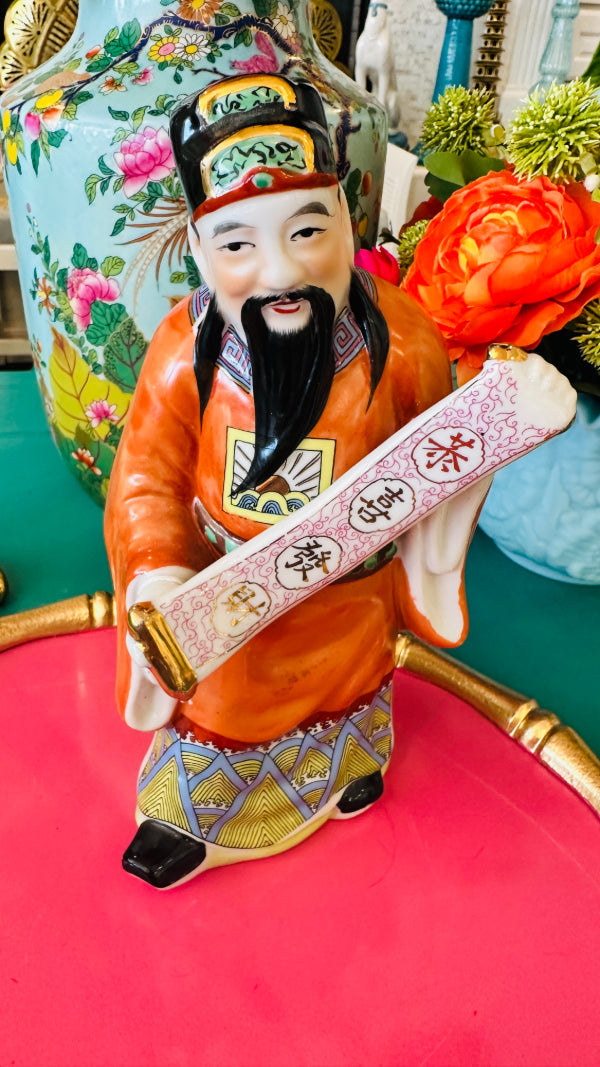 Vintage Chinese Emperor Figurine, Holding Scroll, Asian Motif