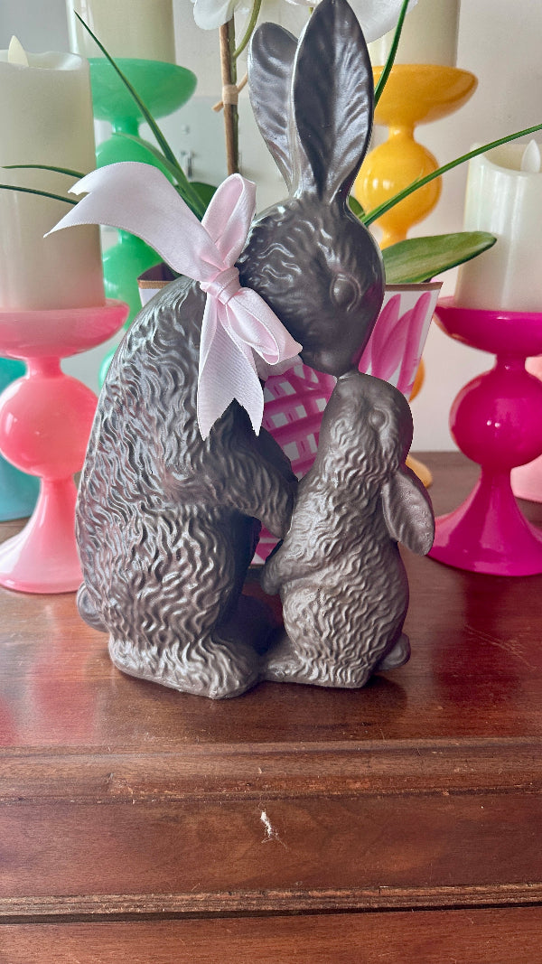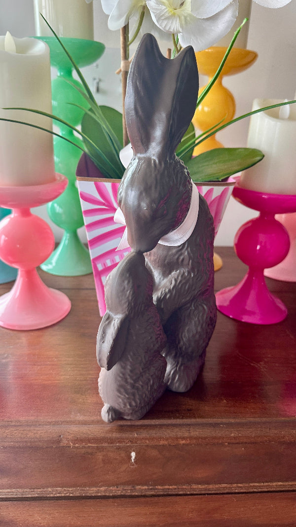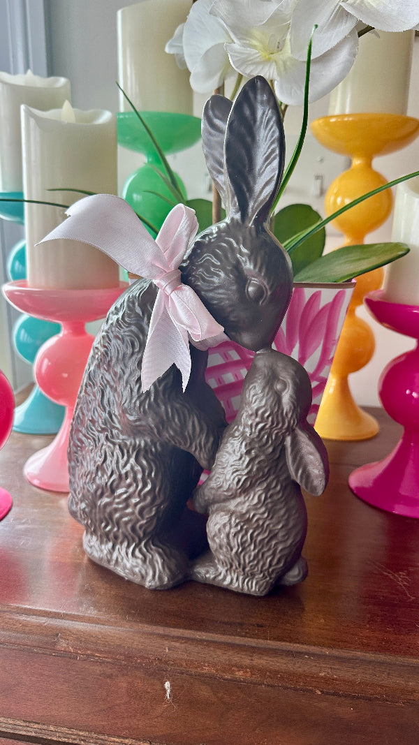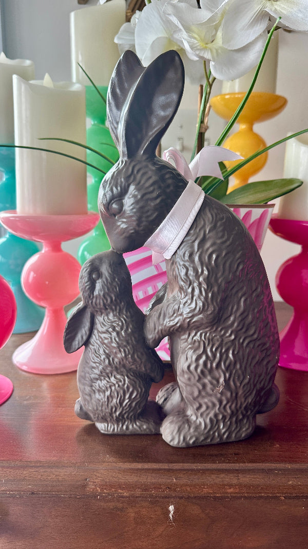 This charming Chocolate Bunnies Figurine adds a playful and whimsical touch to your spring or Easter decor. Featuring two adorable bunnies in a sweet chocolate-inspired design, it brings a sense of fun and delight to any space. Perfect for display on shelves, tables, or as part of a seasonal arrangement, this figurine is sure to bring a smile to anyone who sees it. Whether for collectors or those looking to brighten up their home for the season, this Chocolate Bunnies Figurine is a delightful choice.
