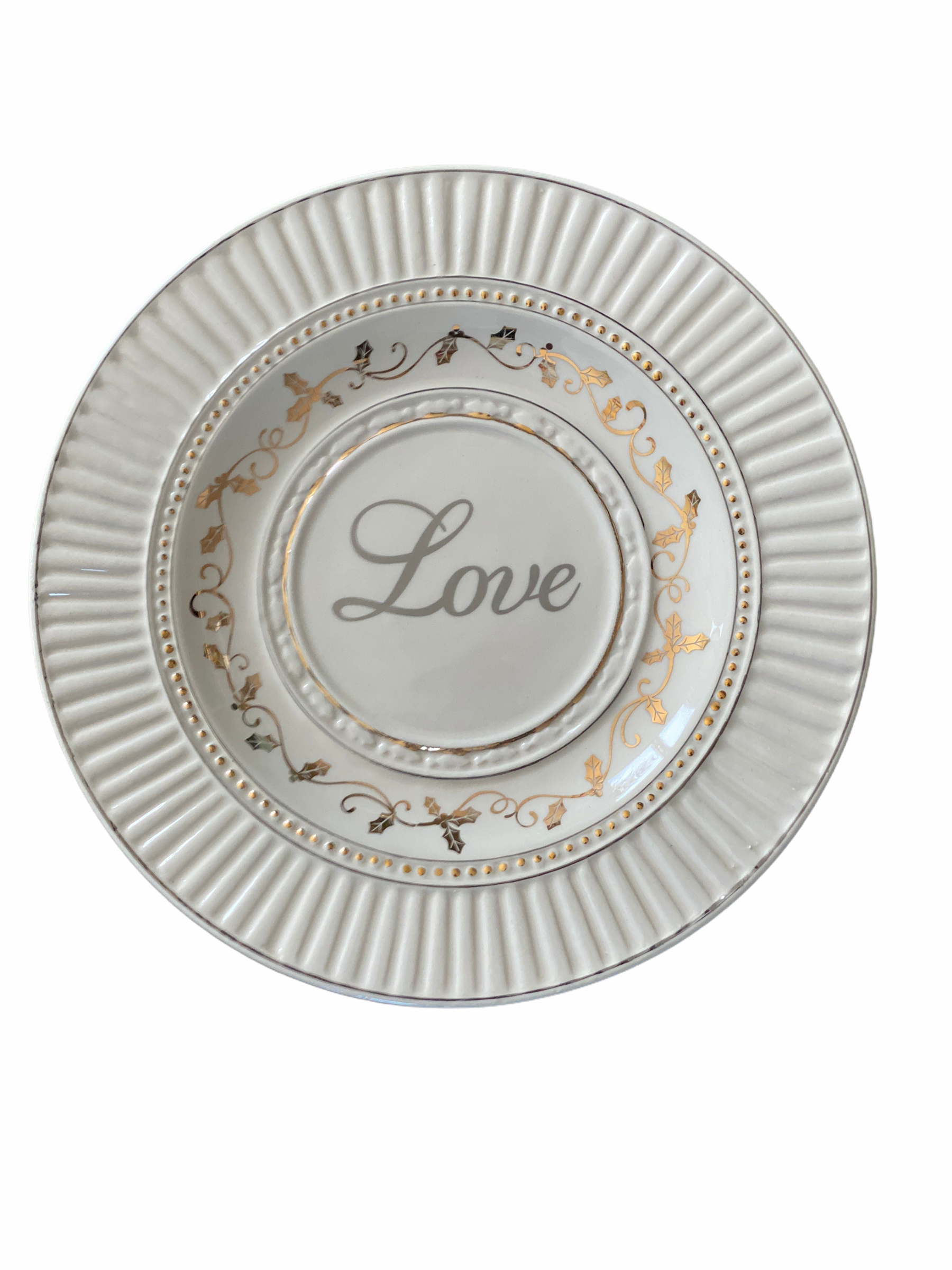 Here's a lovely vintage plate from Cracker Barrel perfect for Valentines day, an anniversary, or a plate wall. Serve on this gold and cream plate or add it to a plate wall.See picture details as they are part of the description.