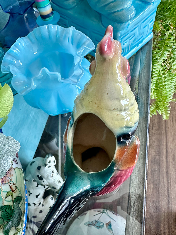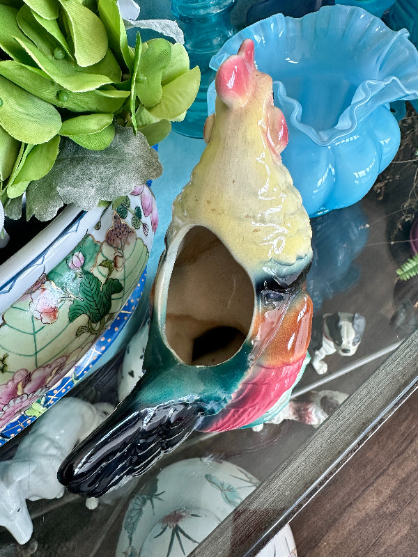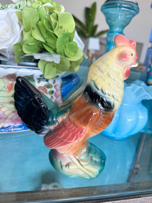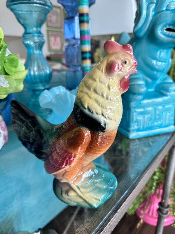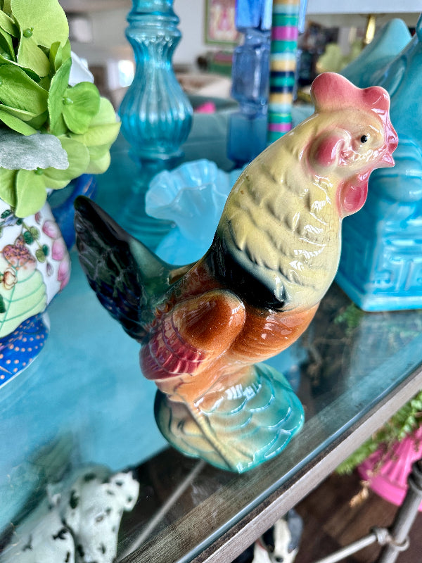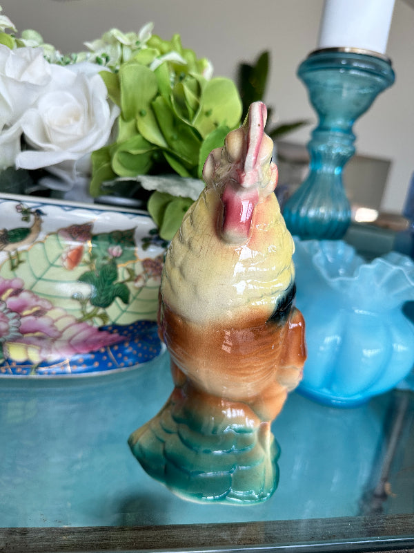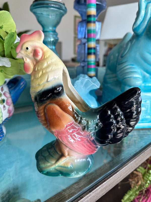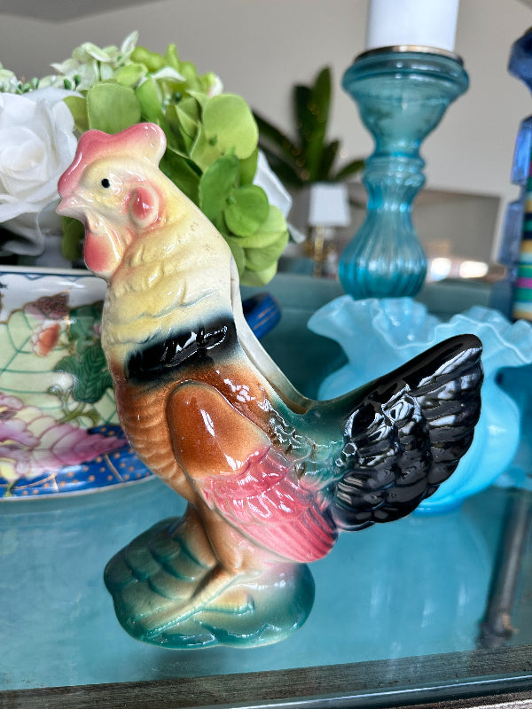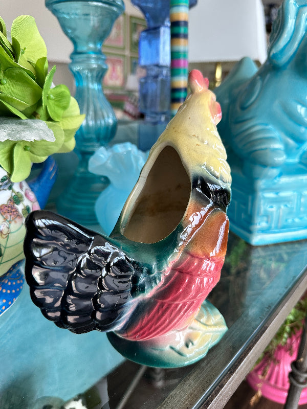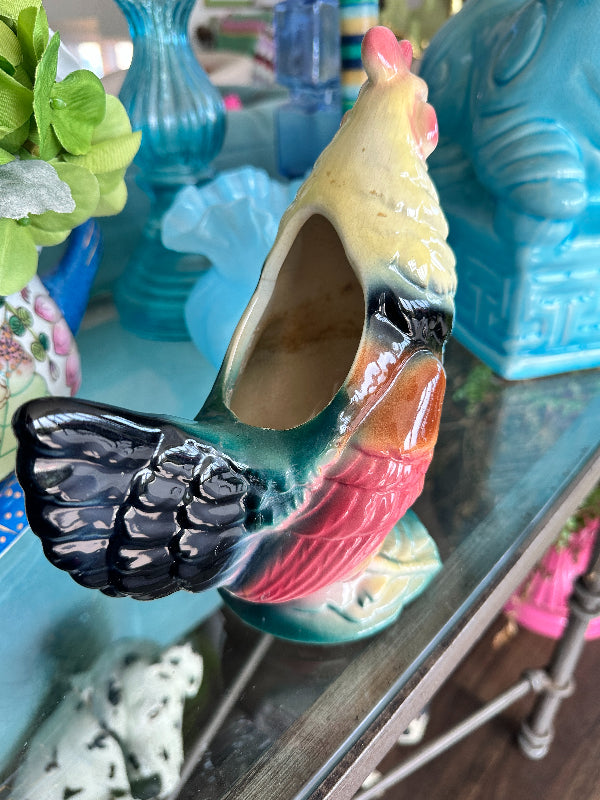 This colorful rooster planter can hold your favorite succulents or plants. Great to place on the kitchen counter for a fun vintage look. Amazing vintage condition.