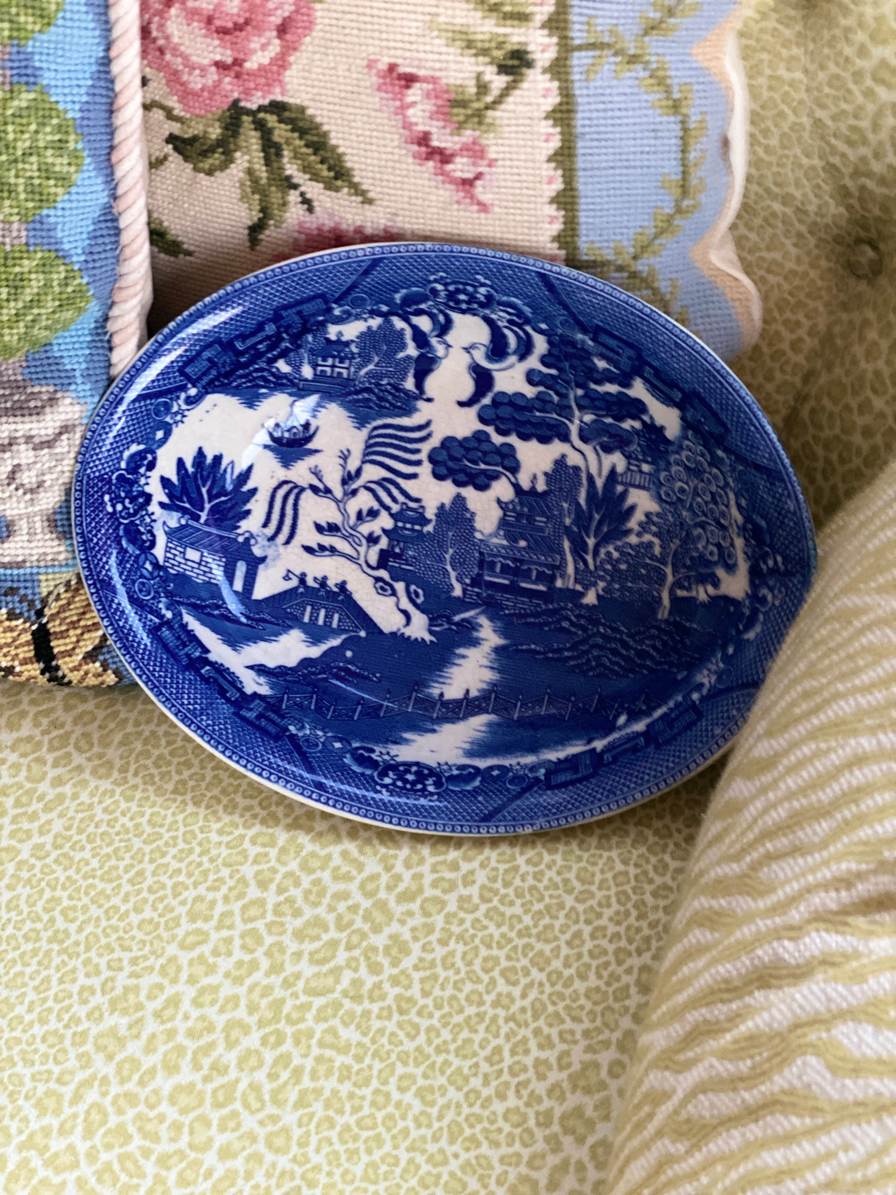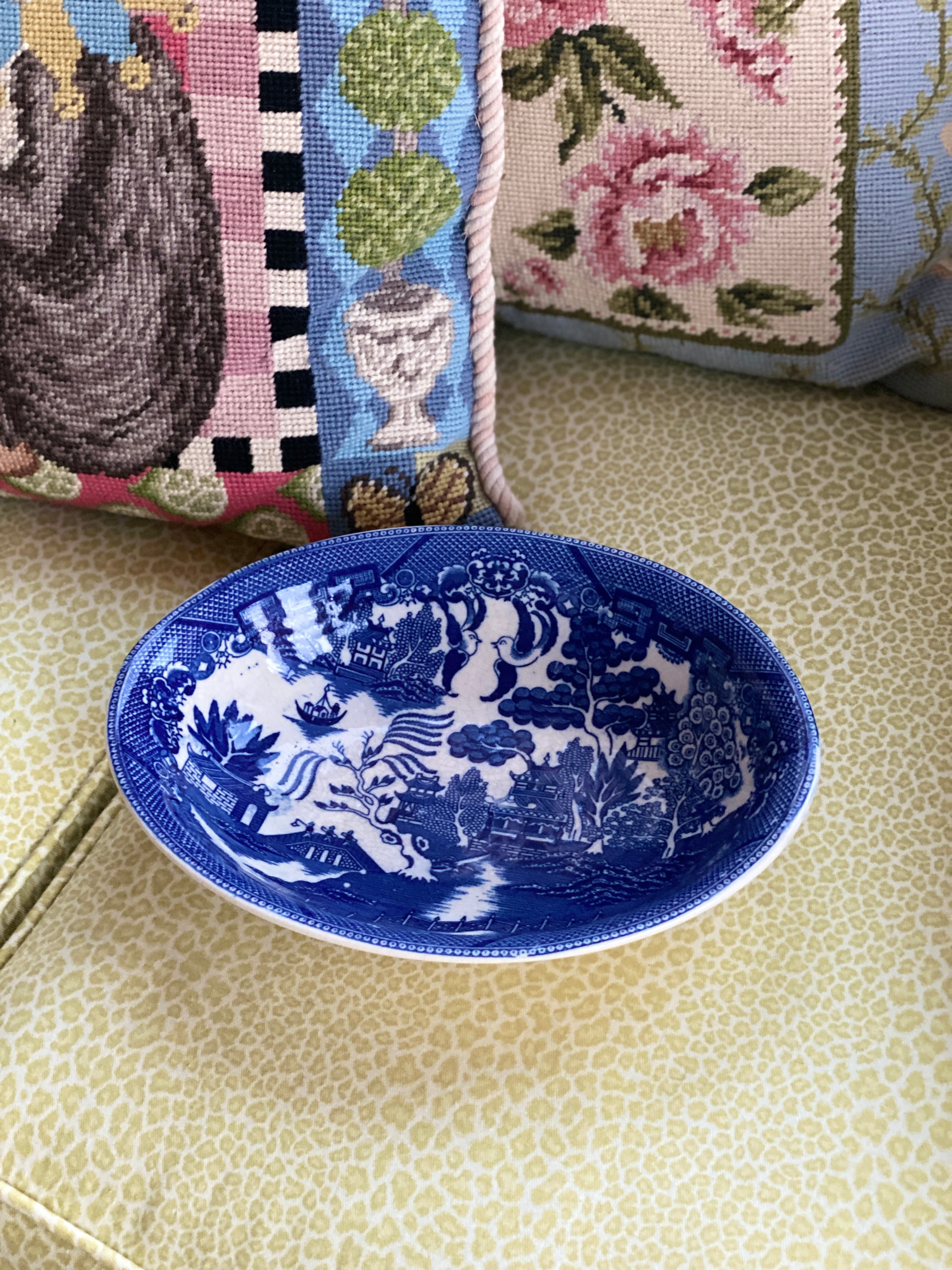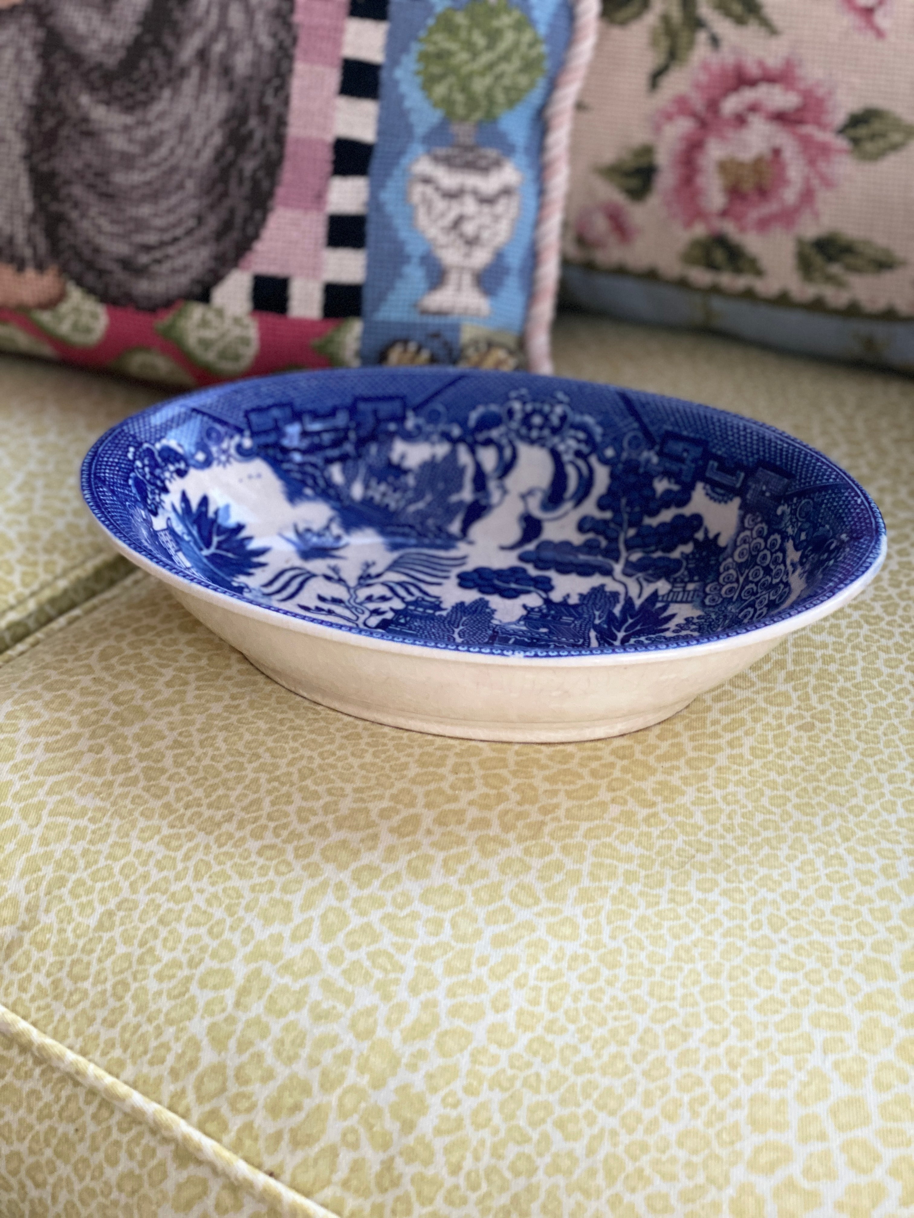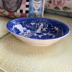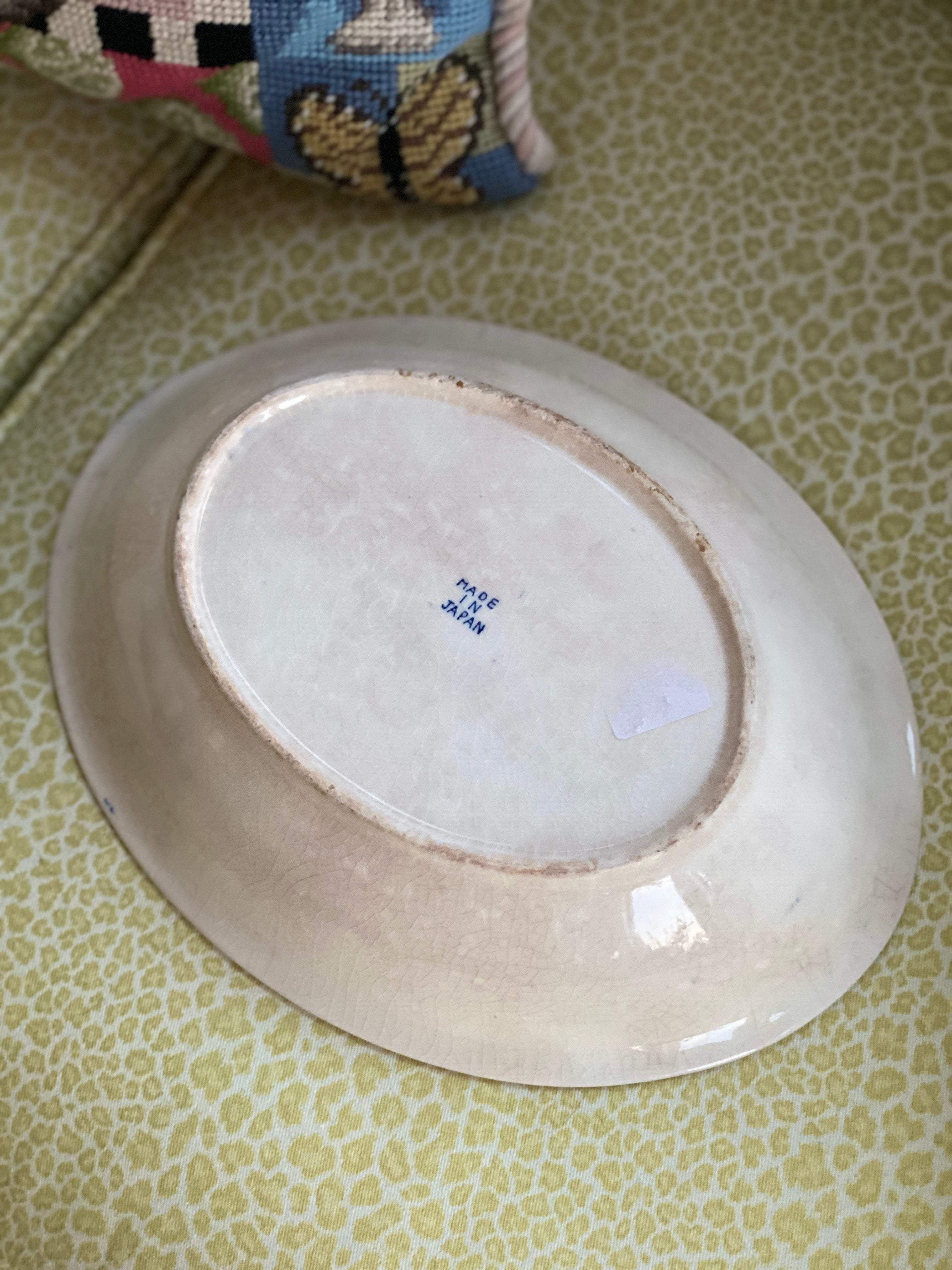 This beautiful Blue Willow antique serving bowl is sturdy enough for special occasions and/or everyday use. Nice oval shape is perfect for side dishes like mashed potatoes or green beans. This piece is in great condition. No chips, cracks or repairs. Some crazing and a little staining on bottom typical with age. StMped “made in Japan” on bottom.