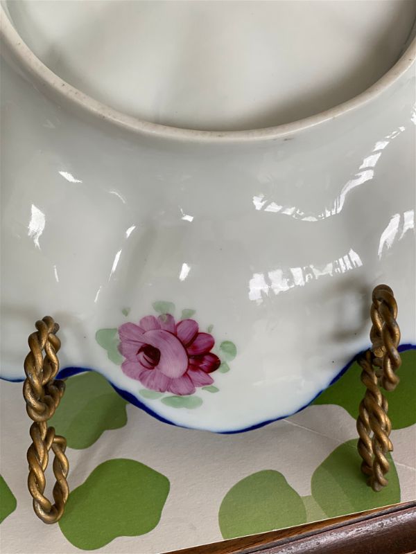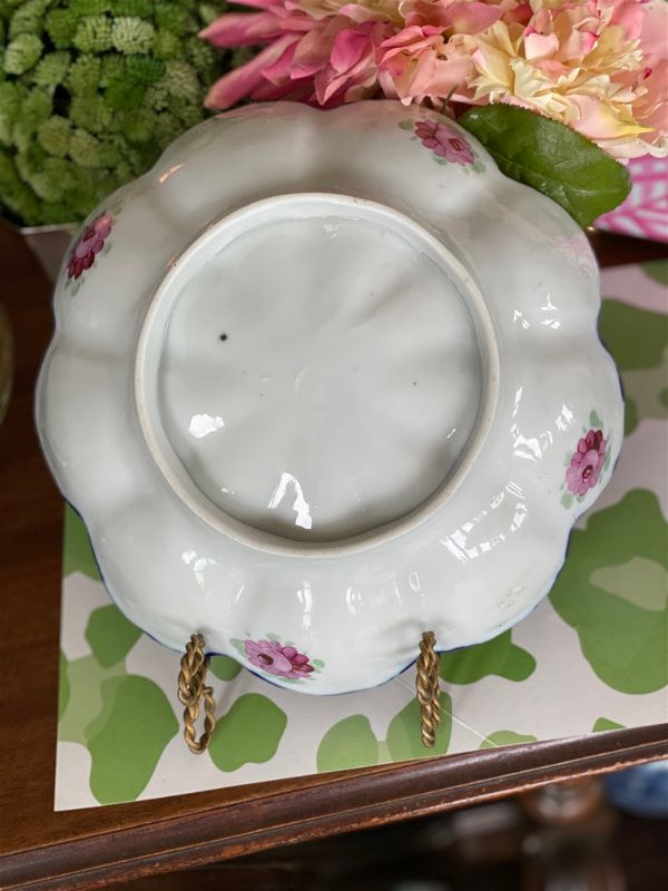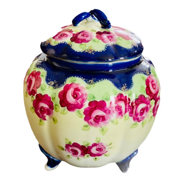 Antique Nippon Jar, Lidded Blue, White, Pink and Green Floral Potpourri Bowl