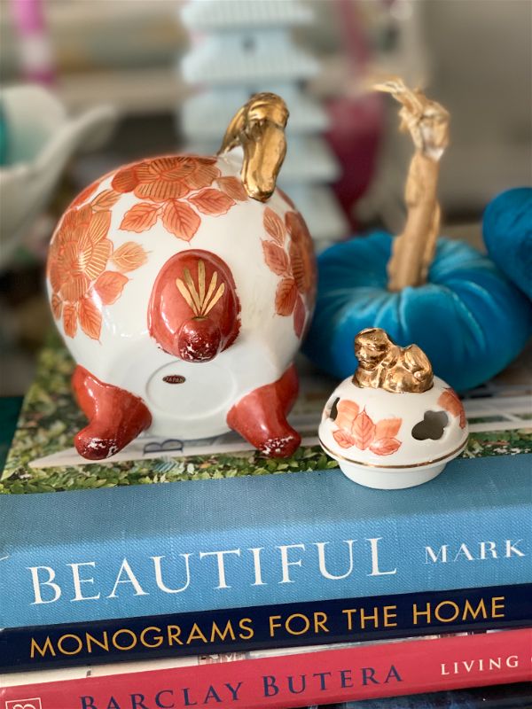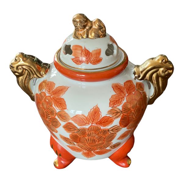 Vintage Japanese Porcelain Orange, White, Gold Sensor with Foo Dog Accent