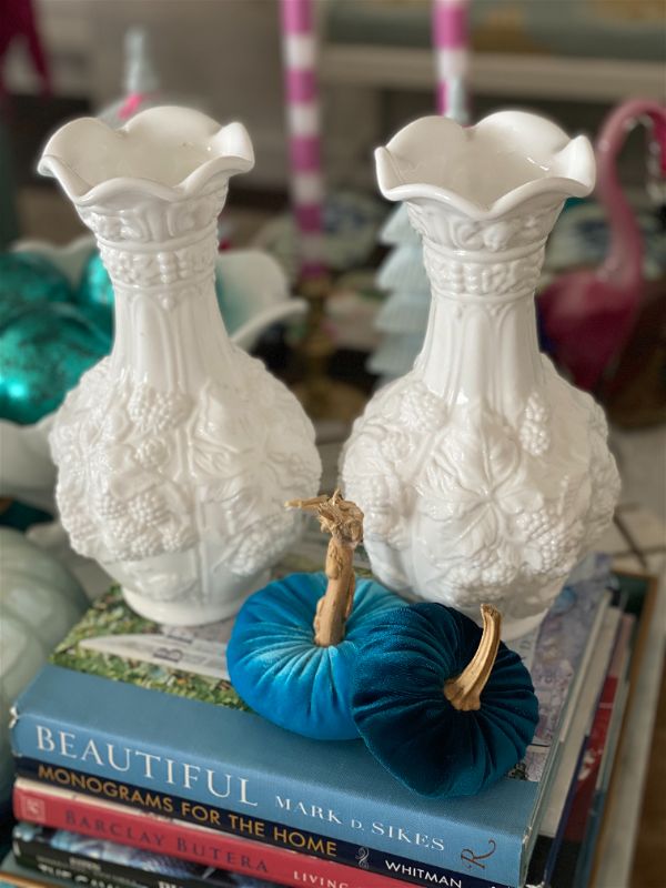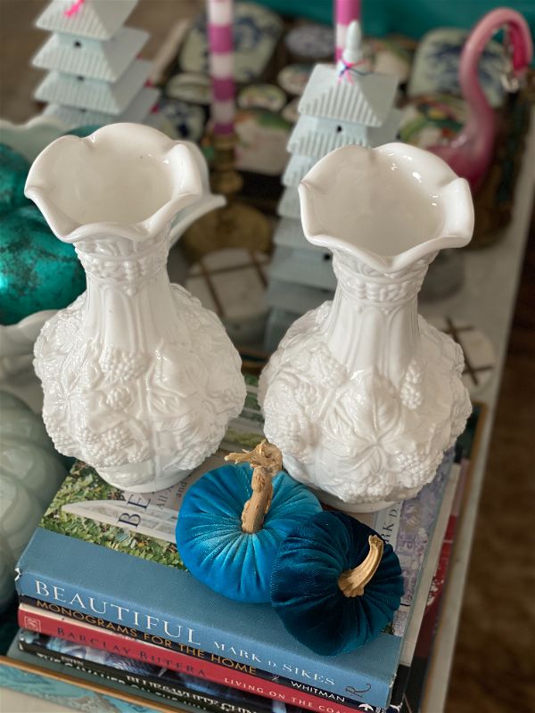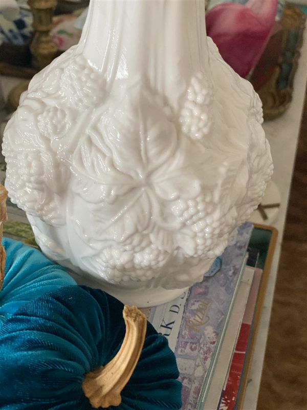 A perfect vintage milkglass grapevine vase will add a classic look to your home. It is in pristine shape. Great large size for a mantle or long table. Nice for an entrance way or on a dining room sideboard or buffet. These are perfect to use all year round with a quick change of flowers or greenery to match the seasons. See picture details as they are part of the description.