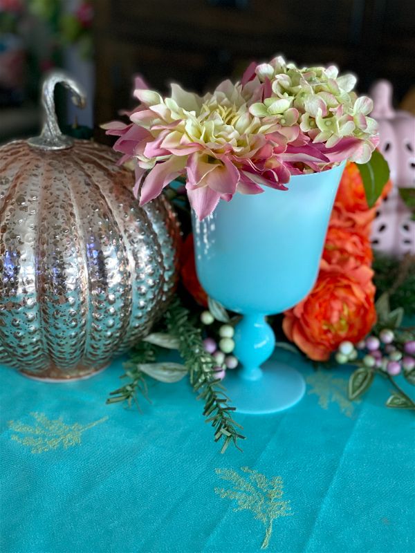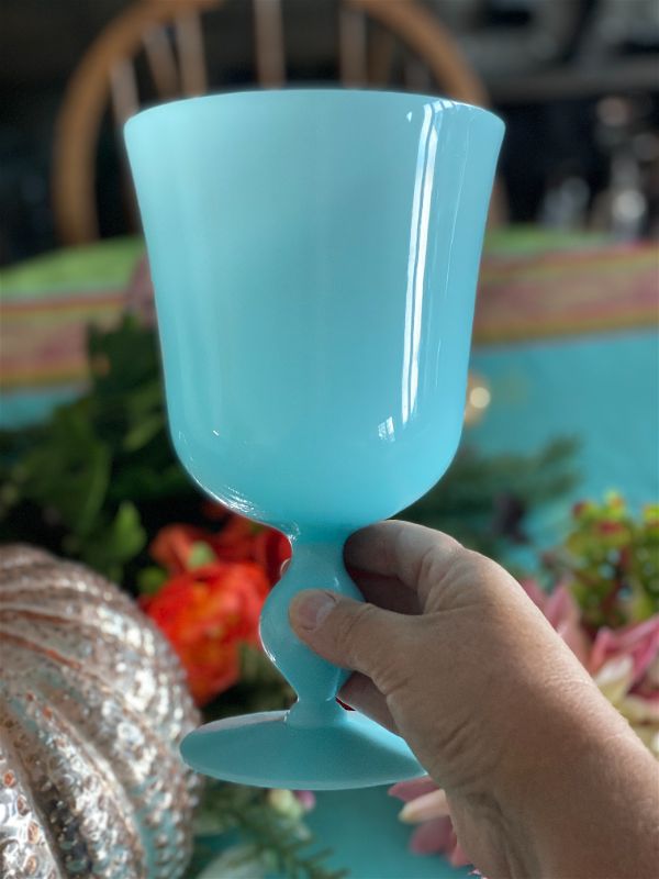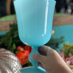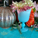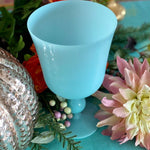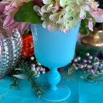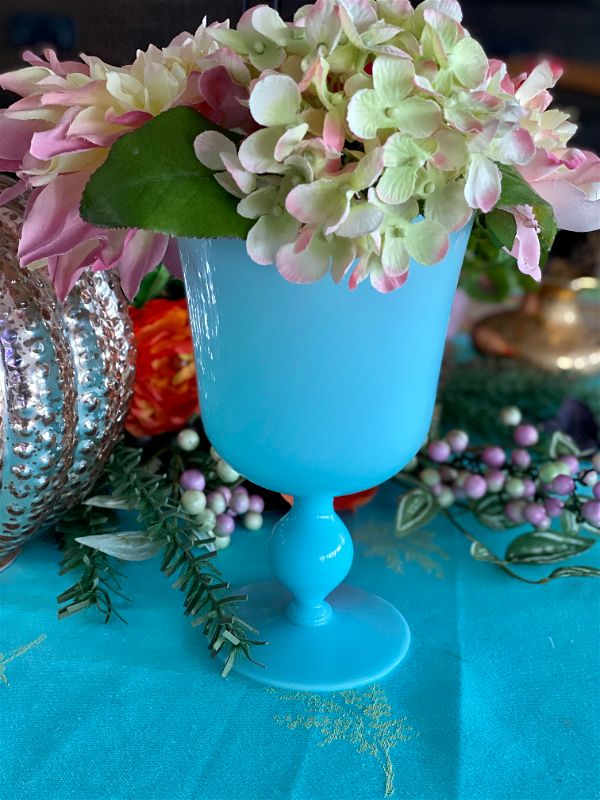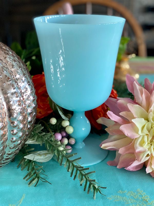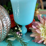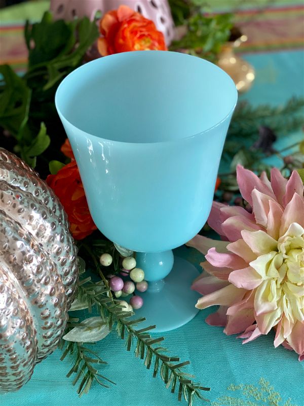 Gorgeous goblet pedestal vase is the most beautiful robin's egg blue and in exceptional vintage condition. Highly collectible and rare find. Great as a stand alone on a shelf or tabletop. Fill with cut flowers from your garden or holiday greens. One of a kind retro, vintage, mid century modern. See picture details as they are part of the description.