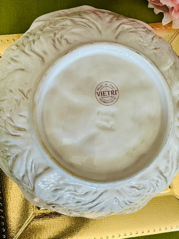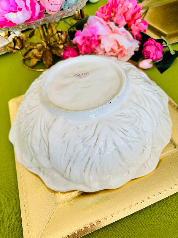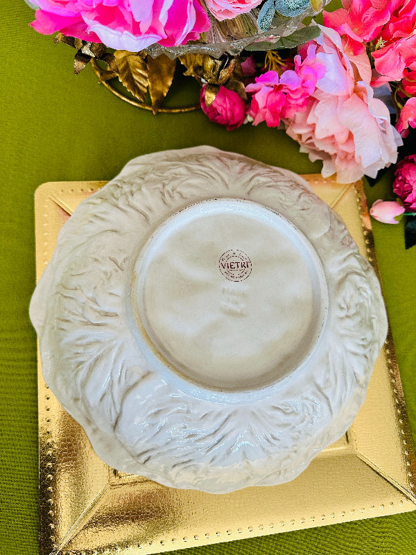 Vietri Cabbage Leaf Asparagus Bowl, Italian Majolica Mid Century Ceramic