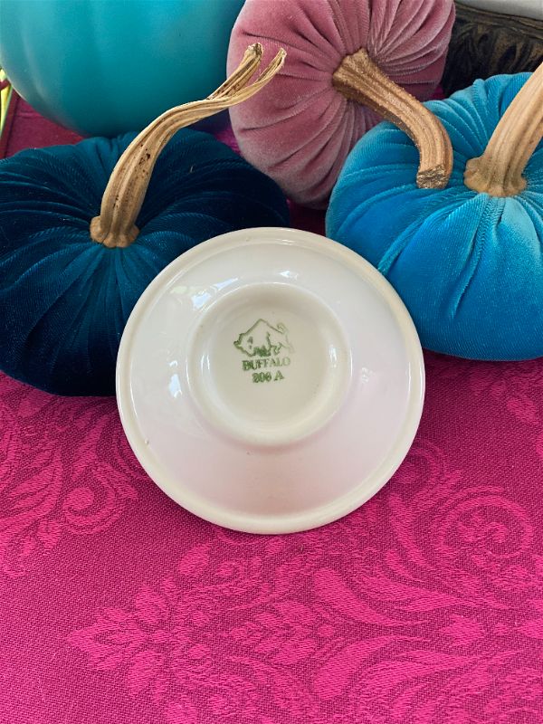 Need a catch all for your rings on your nightstand or on kitchen counter while you're cooking? Here's a cute, hand painted, floral and bird Buffalo Pottery trinket dish. Perfect vintage condition. Buffalo signature stamp on the bottom. Use it as a soap dish or sponge holder. See picture details as they are part of the description.