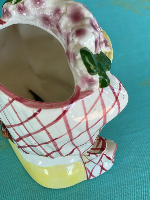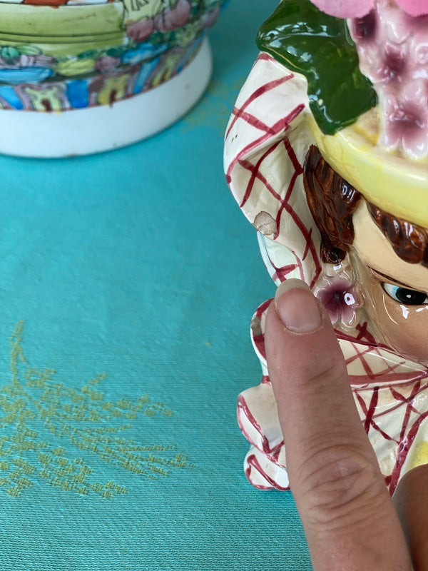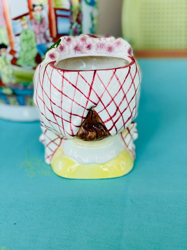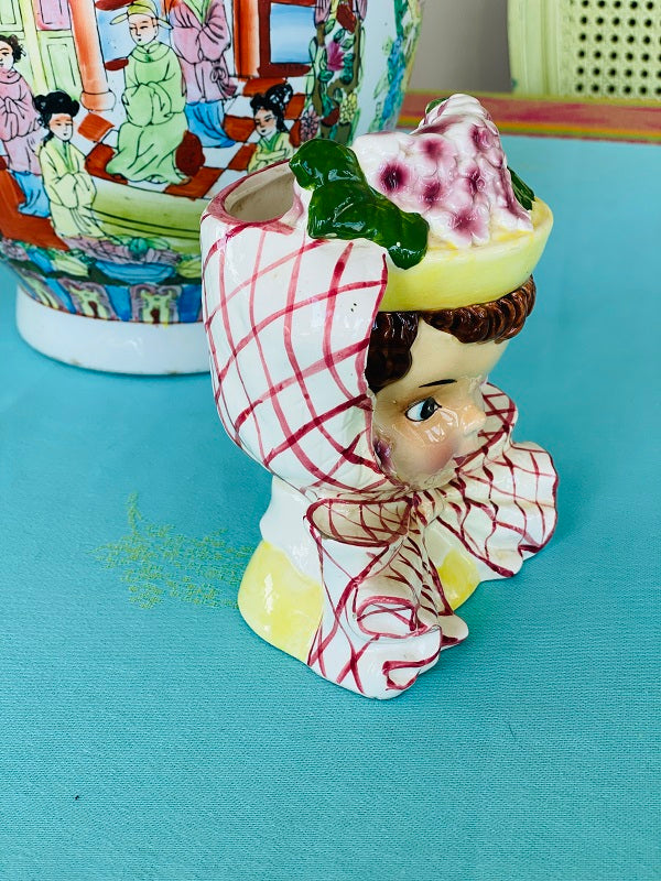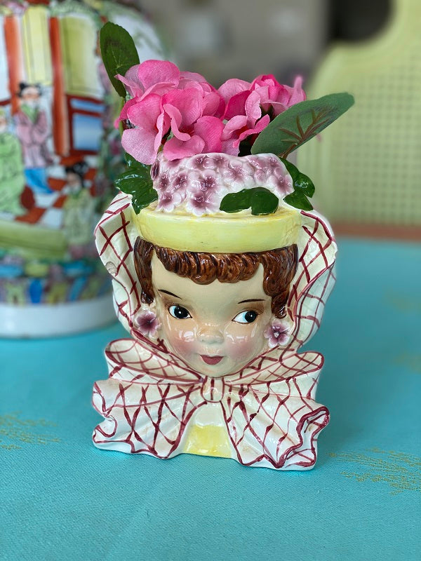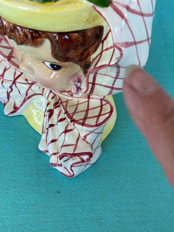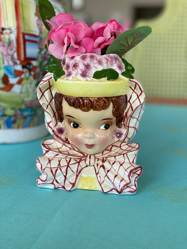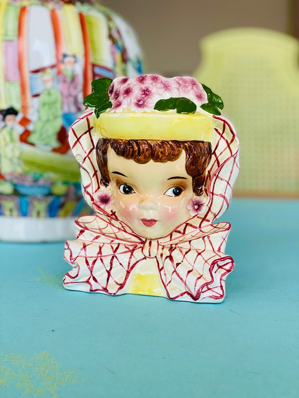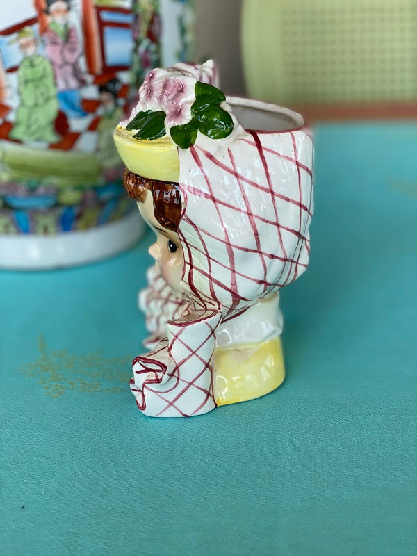 Vintage Lady Head Planter Mid Century Modern Bonnet and Bow (a couple of tiny chips)