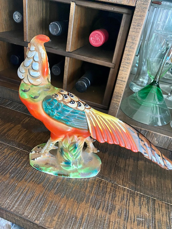 Pheasants and other waterfowl figures are often used to display for the Fall season. They add color and interest to a shelf, vignette or table. This colorful bird is made by Napco. It is hand painted in bright colors. The original sticker is still intact. Great vintage condition. Slight paint wear. See picture details as they are part of the description.
