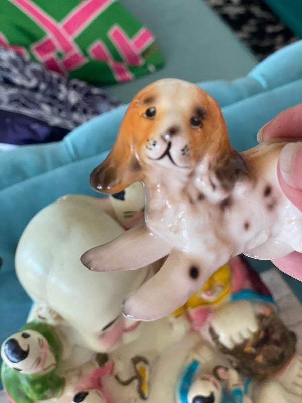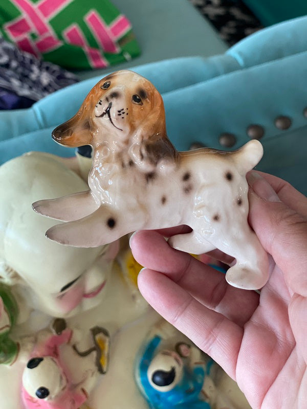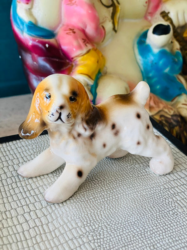 Vintage Puppy dog Figurine Spotted Porcelain from Japan
