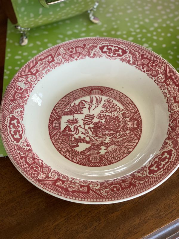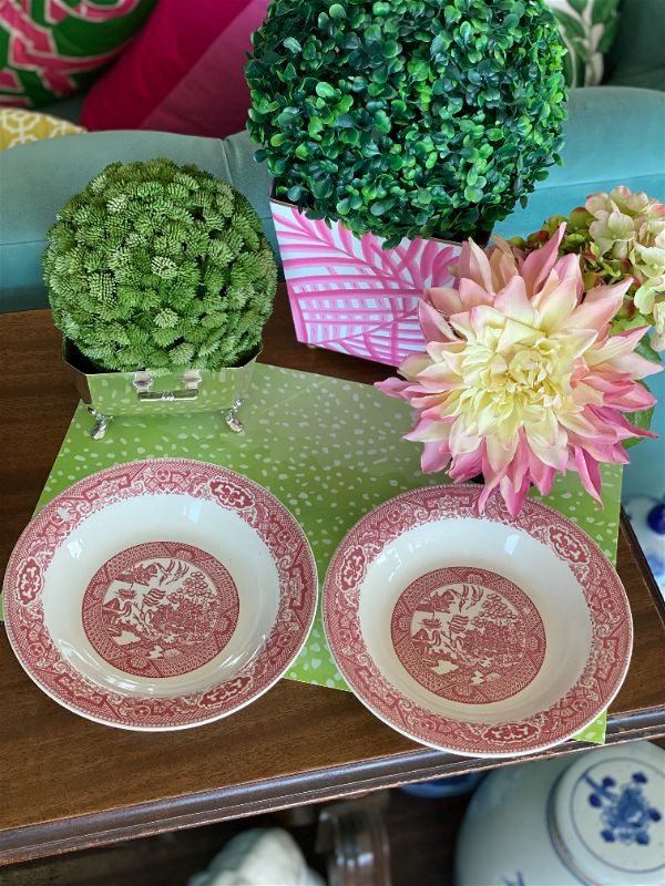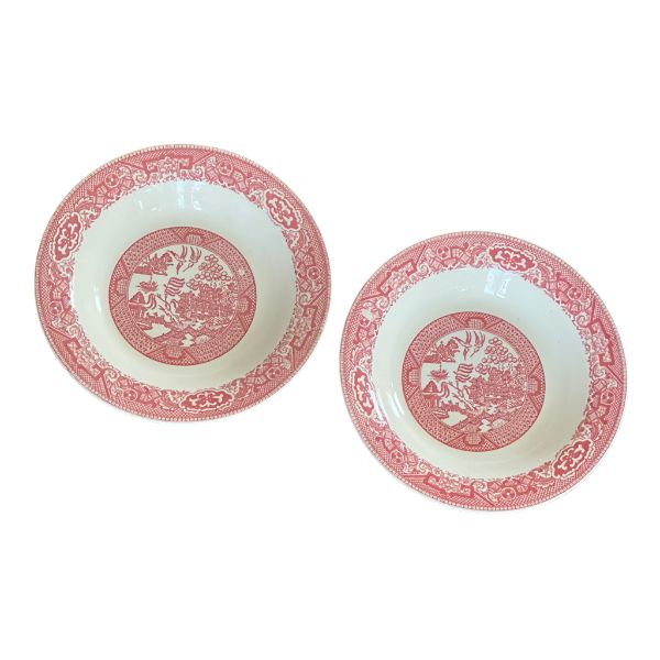 Pink and White Blue Willow bowls for the win! If you enjoy collecting all colors of vintage willow china you will love this pair of bowls. Perfectly sized for cereal, soup, stew, or sides. These are from the Willow Ware Royal China collection. Stamped on the bottom. Great vintage condition. See picture details as they are part of the description.