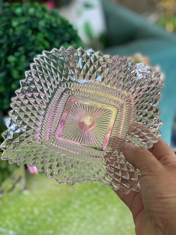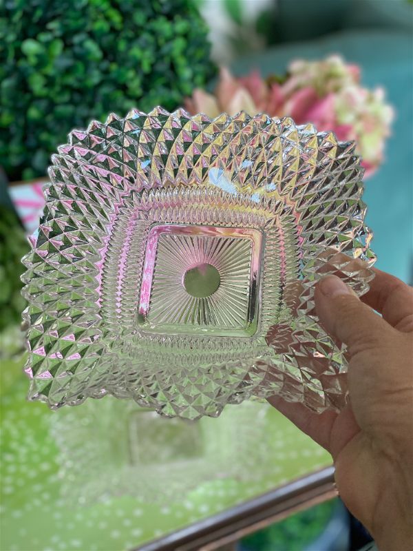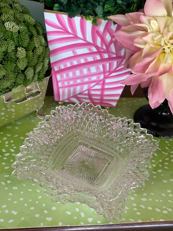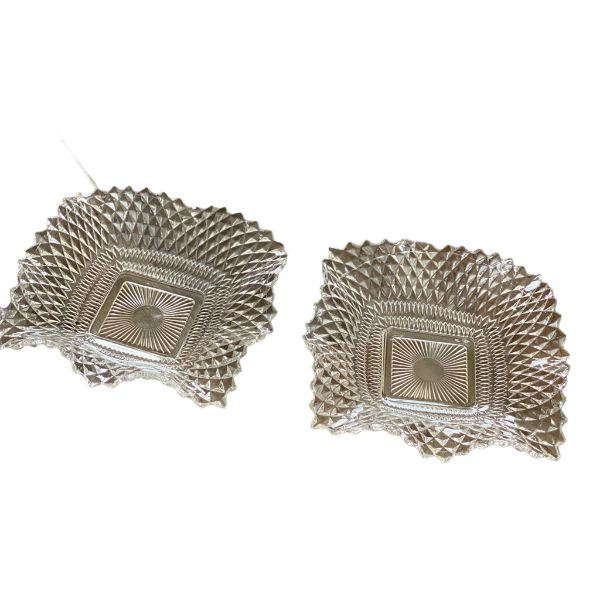 Do you collect cut Crystal? This pair of diamond pattern crystal small dishes have a wavy edge. They sparkle and shine when the light hits the. Great for candy, nuts, bar fruit. Works to store desk supplies like rubber bands or paperclips. Give them as a gift with some hard candies or gourmet nuts. Wonderful vintage condition. See picture details as they are part of the description.