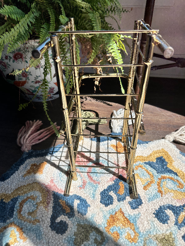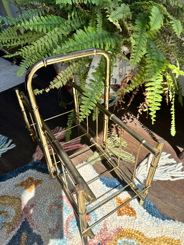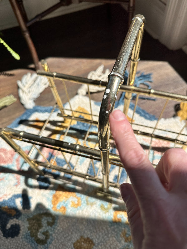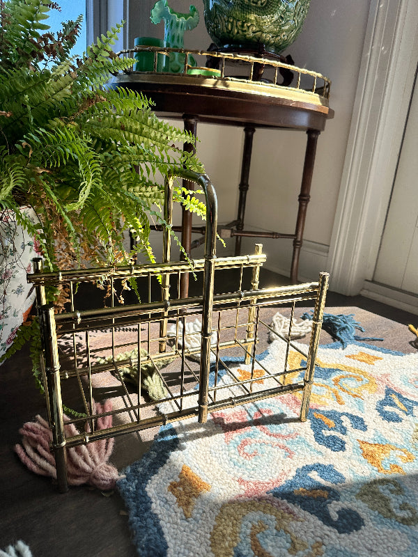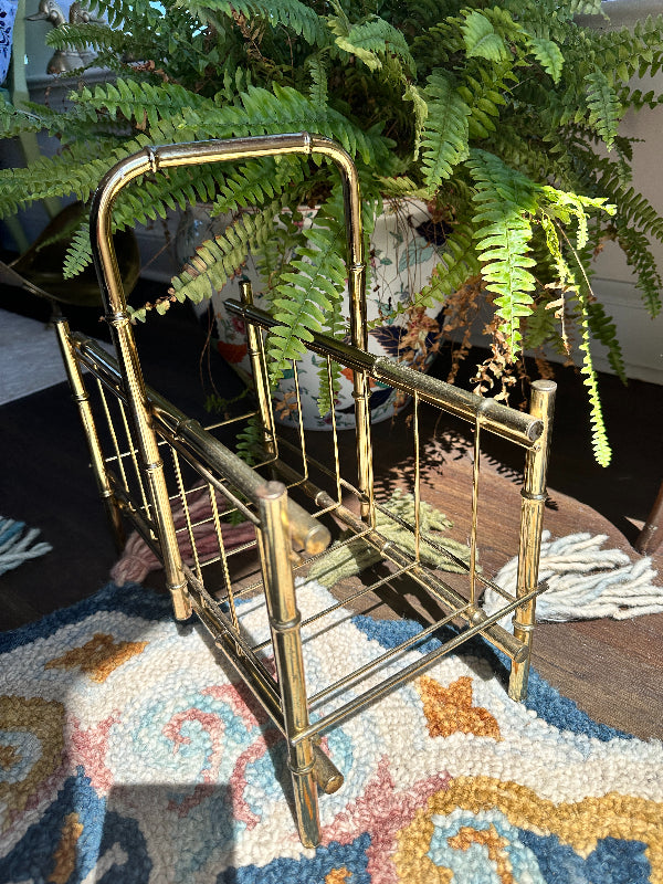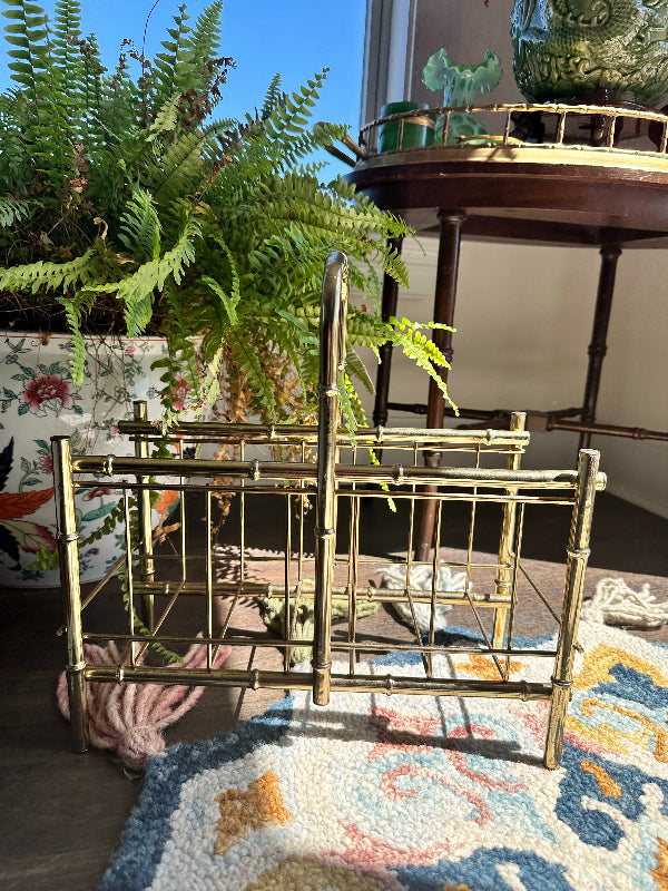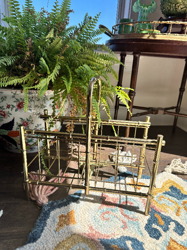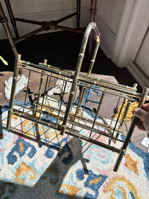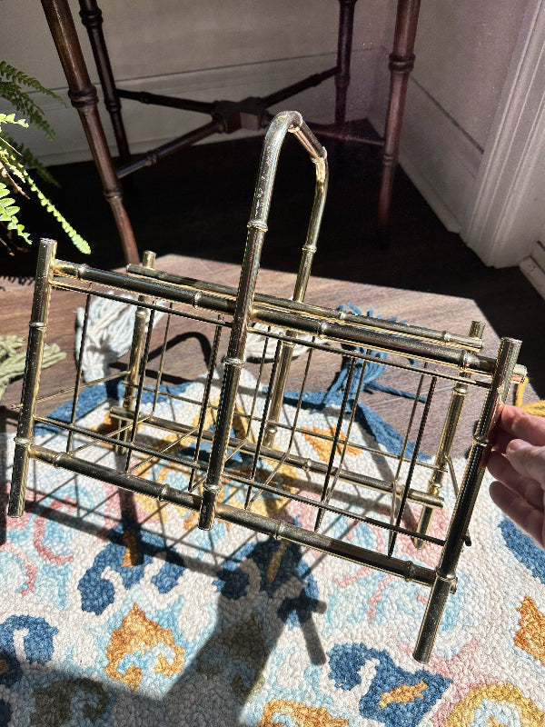 Faux Bamboo Magazine Rack, Vintage, Gold tone Metal