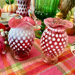 Fenton Cranberry Glass Hobnail vase, 1940s -50s, Triangle Crimp, 2 Available, EACH SOLD SEPARATELY