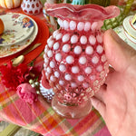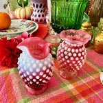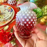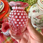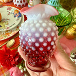 Fenton Cranberry Glass Hobnail vase, 1940s -50s, Triangle Crimp, 1 left, WHITE TOP AVAILABLE ONLY