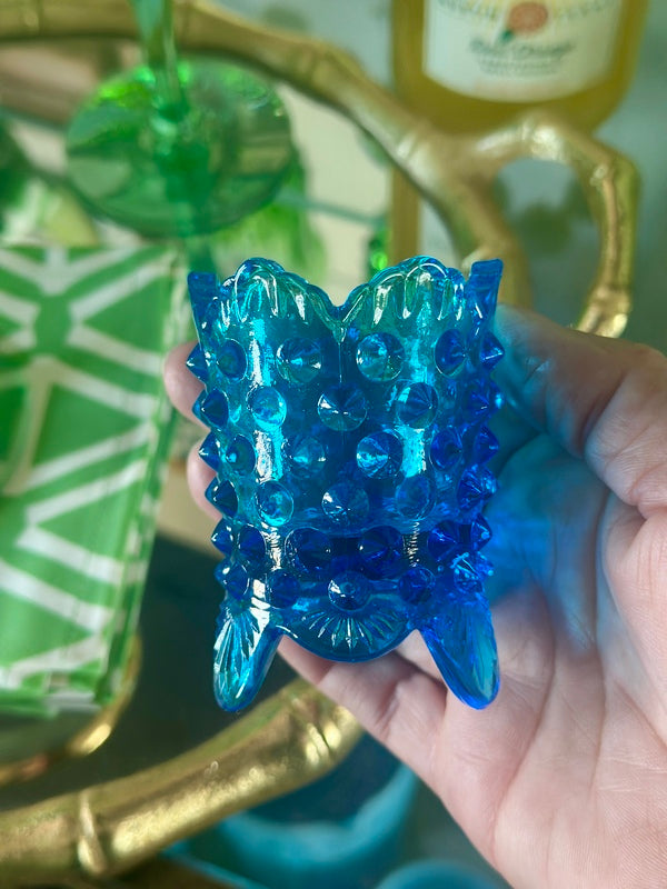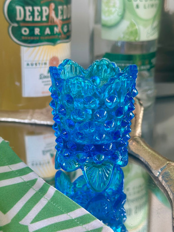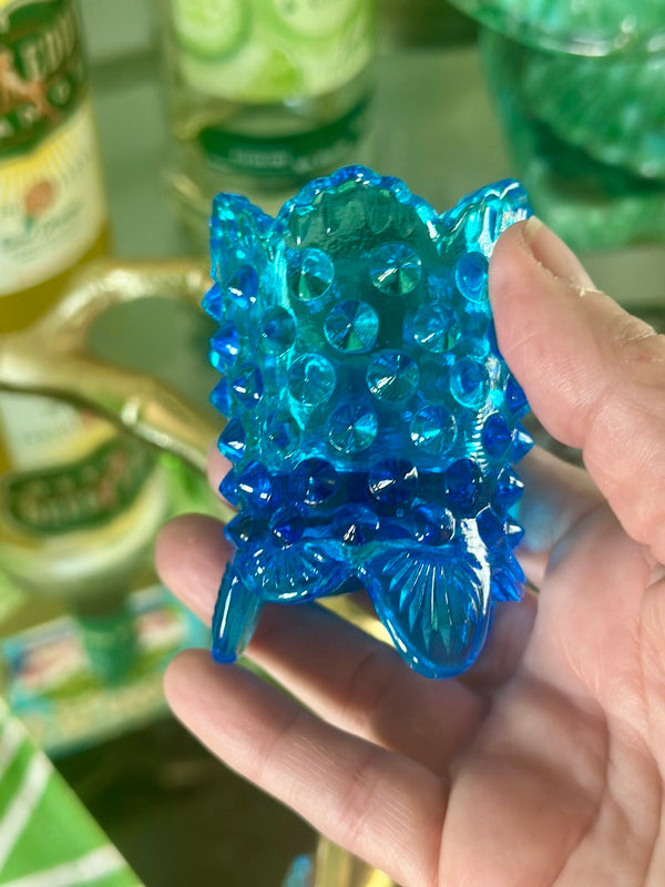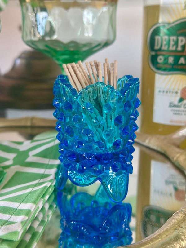 Fenton Hobnail Toothpick Holder, Blue Glass