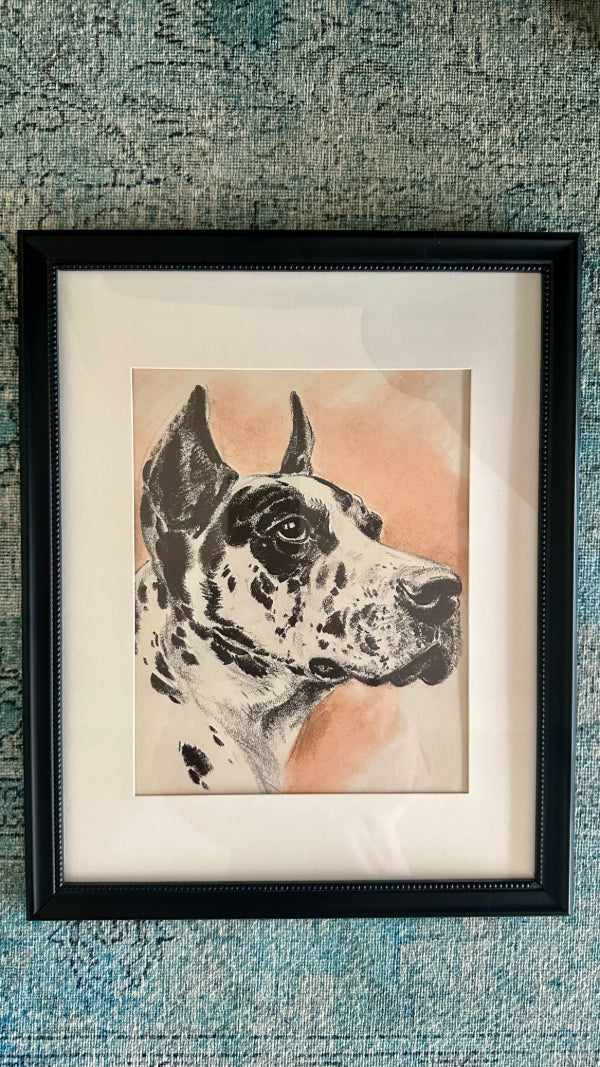 Vintage Framed Great Dane Art Print, Diana Thorne 1944