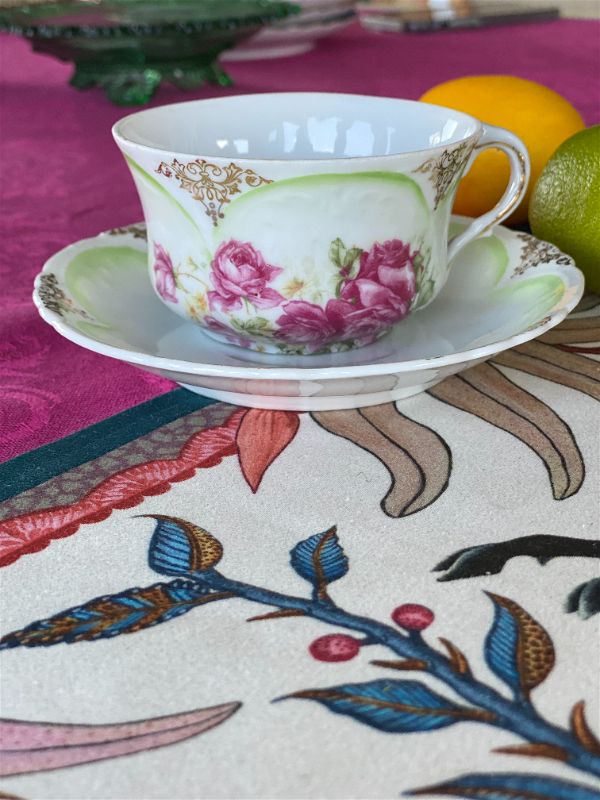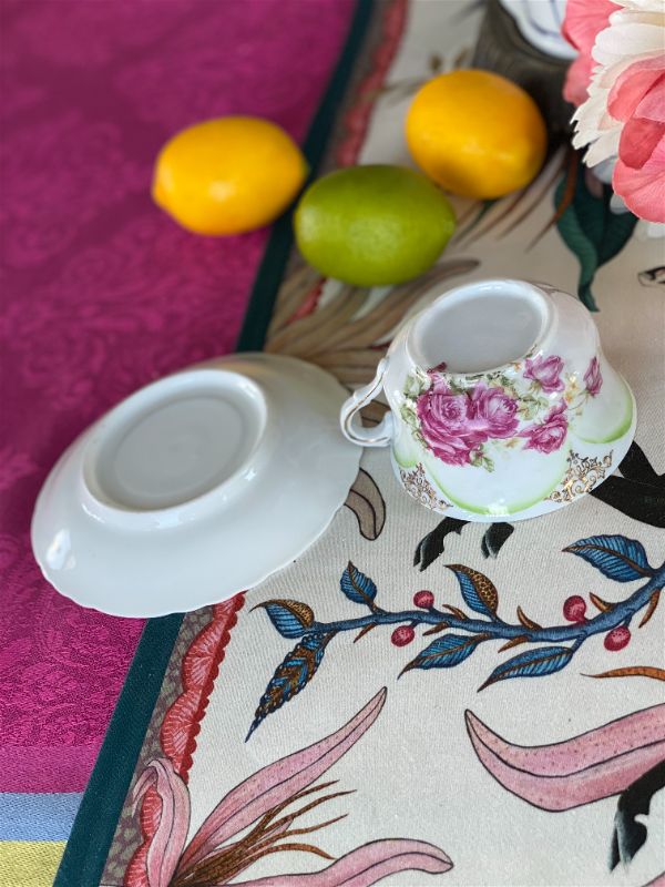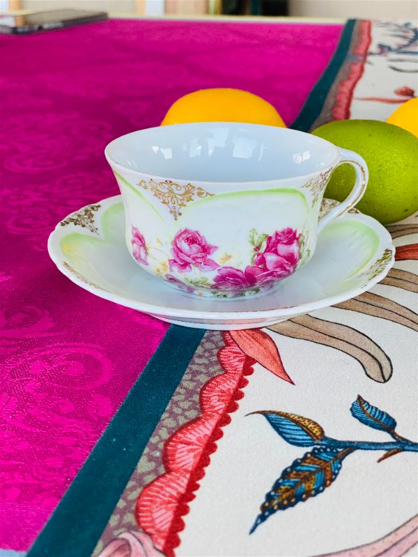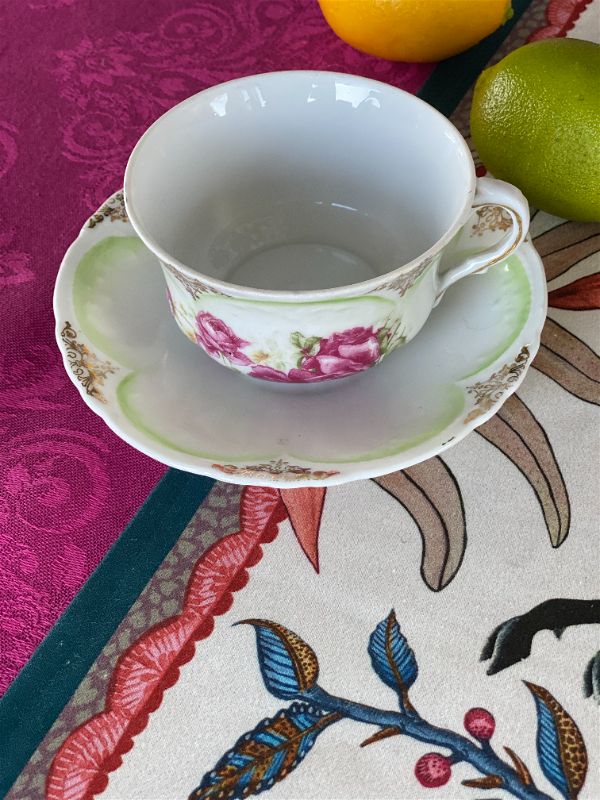 Rare bone china Pink Rose and Green tea cup and saucer