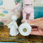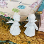 Collecting vintage, porcelain angels has always been a hobby for me since I was a child. Enesco always made some of the best ones. These sweet boy and girl angel with a pink rose accent in their hair are a great addition to your collection. Place them on your mantle with other collected angels, use them in a holiday vignette, or gift them to a friend or family member. There is a sticker still in tact on the bottom. In great vintage condition.