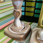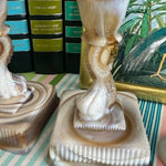 Vintage Imperial Slag Glass Brown and Cream Koi Fish Candle Holders-(PAIR)