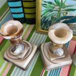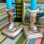 *Vintage Imperial Slag Glass Brown and Cream Koi Fish Candle Holders (pair)
