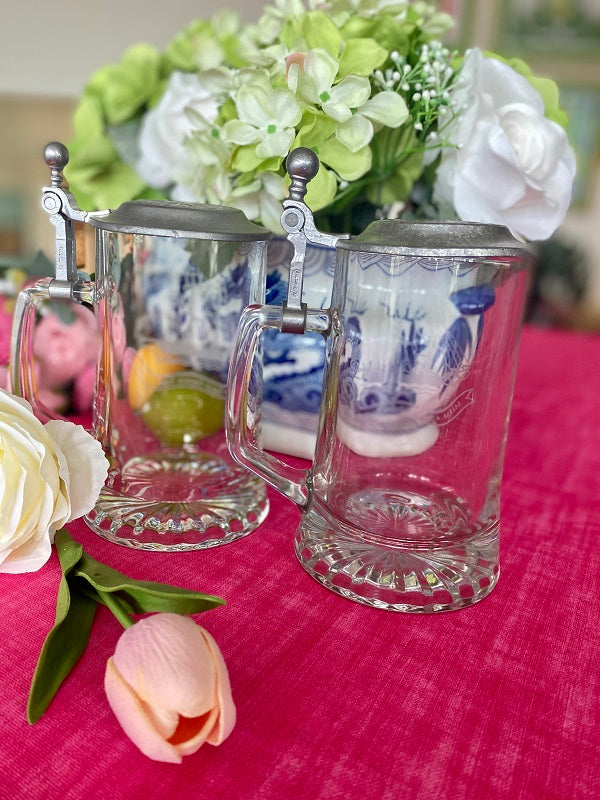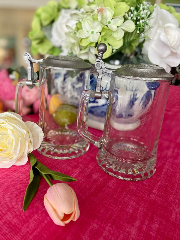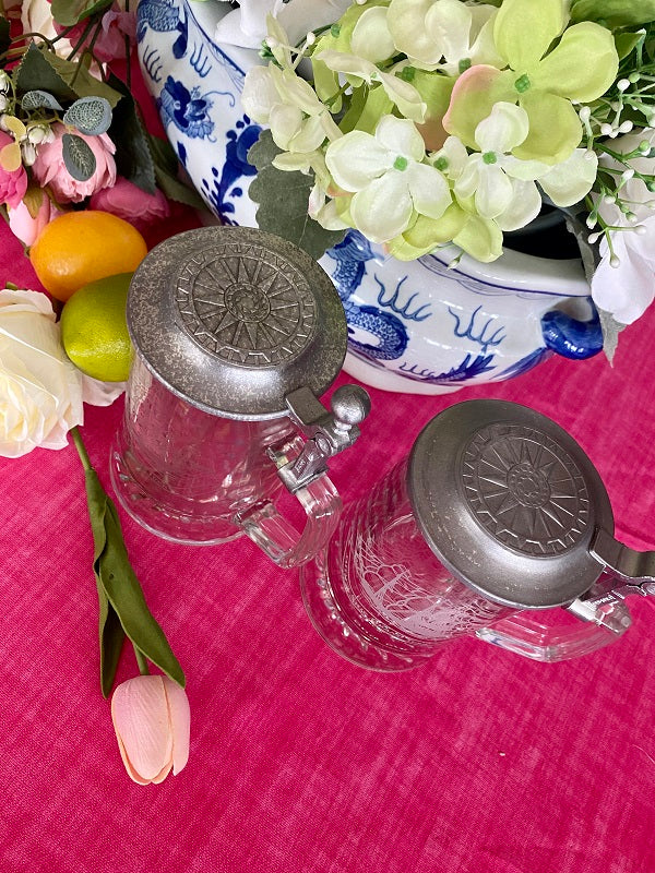 This heavy, well made pair of beer steins have detailed etched sailing ships on the side with Grand Turk inscribed on them. The hinged tops and handles are made of pewter. These make a great addition to a bar or bar cart with your favorite craft beer. They make a great gift for the college graduate or your beer drinking friend.