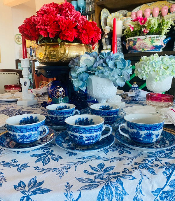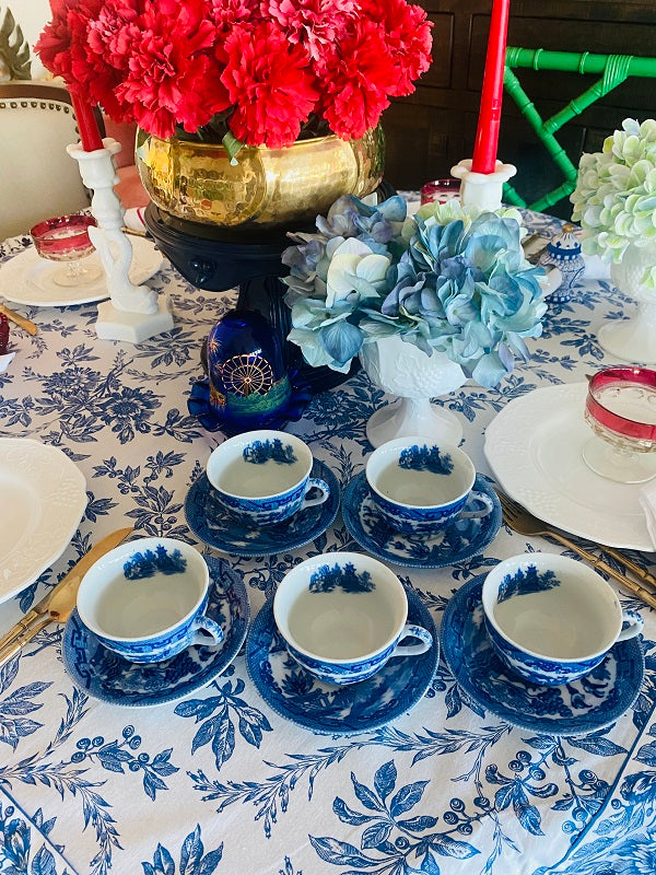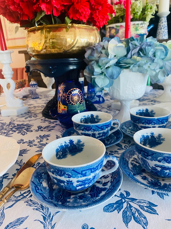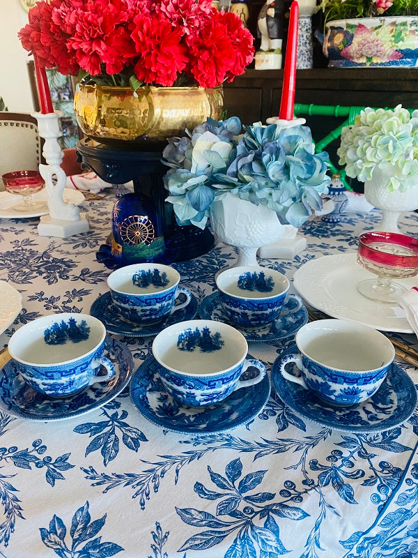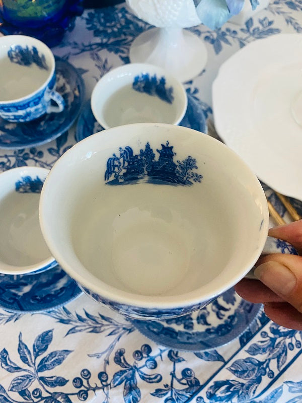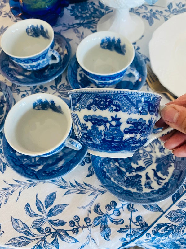 Vintage Blue Willow Cup and Saucers - Japan set of 5