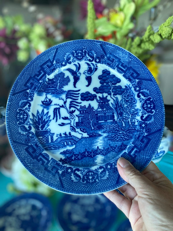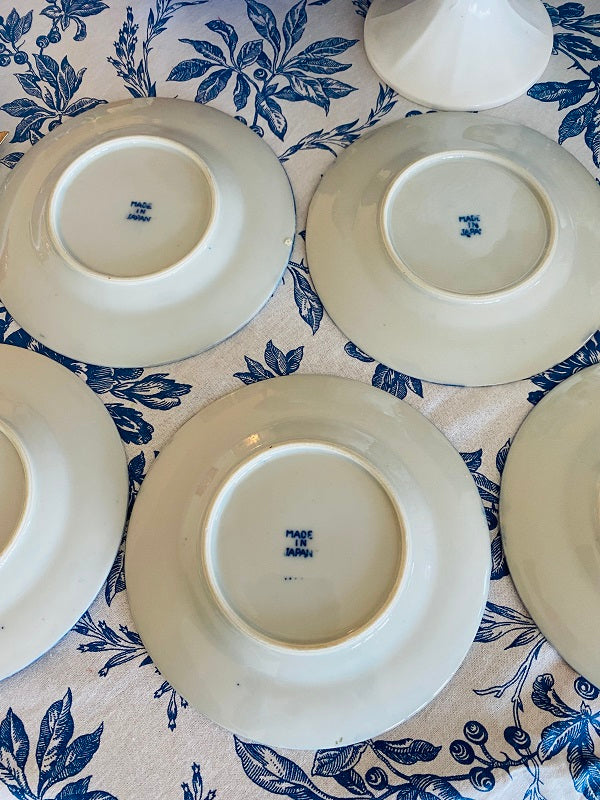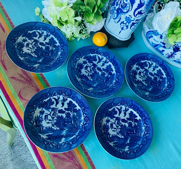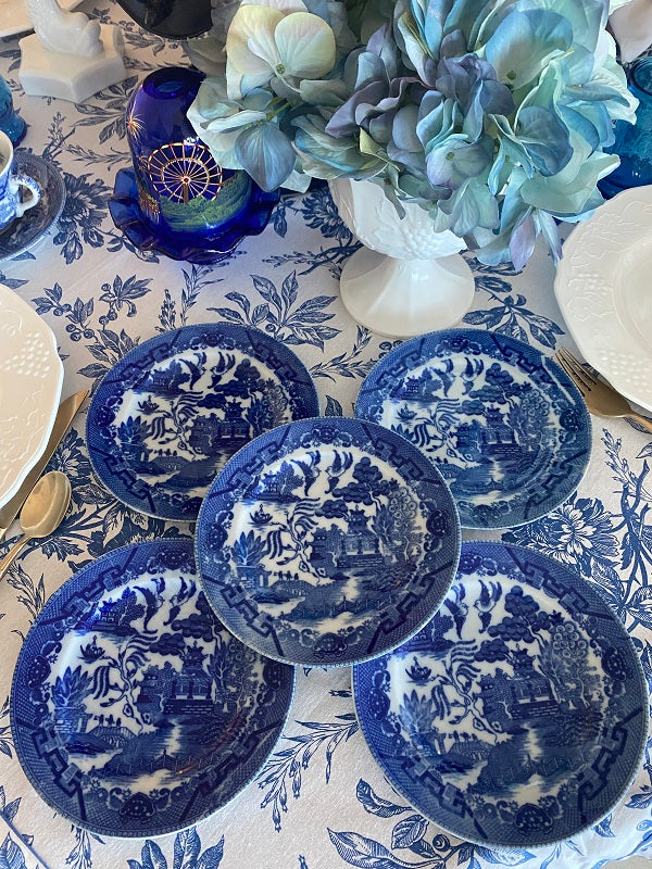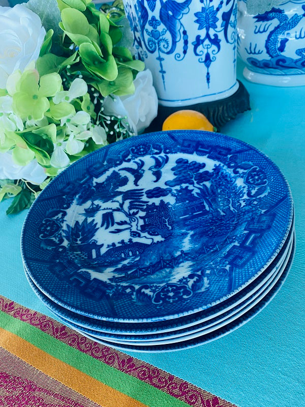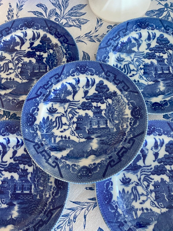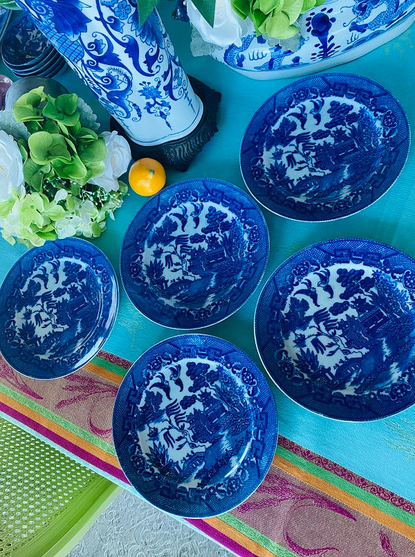 Vintage Blue Willow Dessert Plates, Chinoiserie - Japan Set of 5