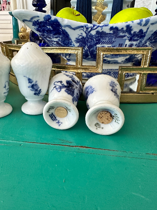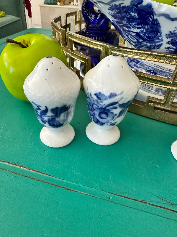 Antique Salt and Pepper Shakers, Royal Copenhagen Blue Flower Curved - 2 Sets Available