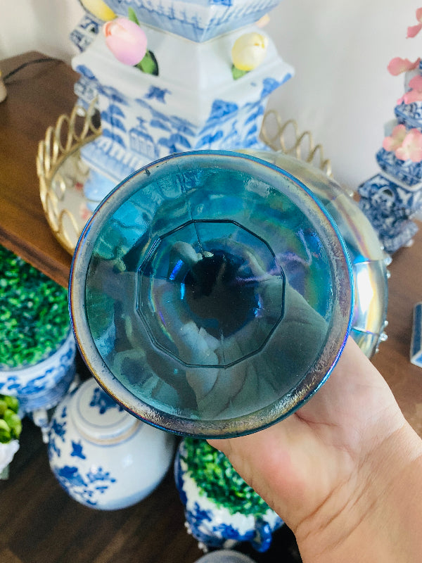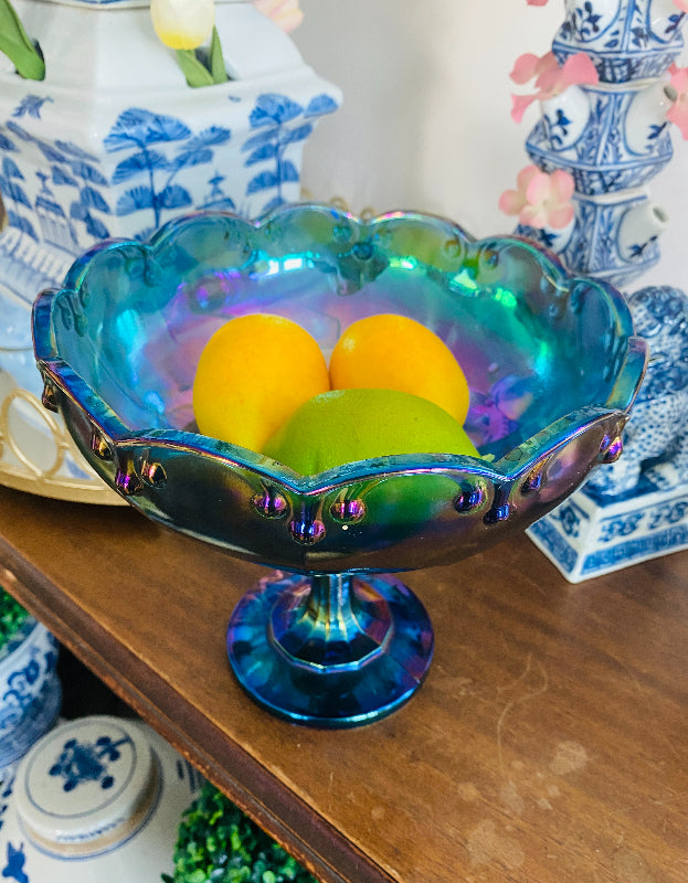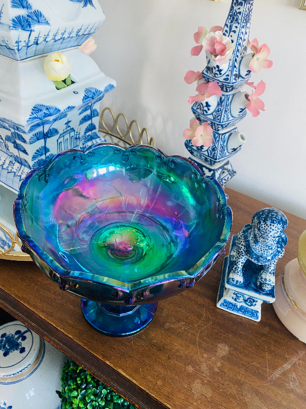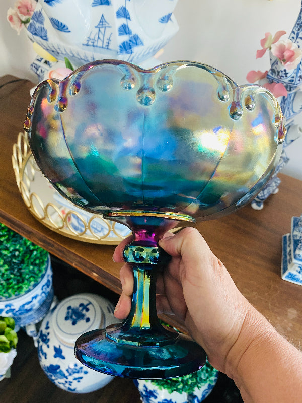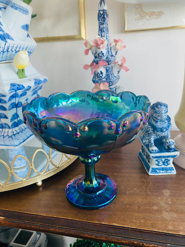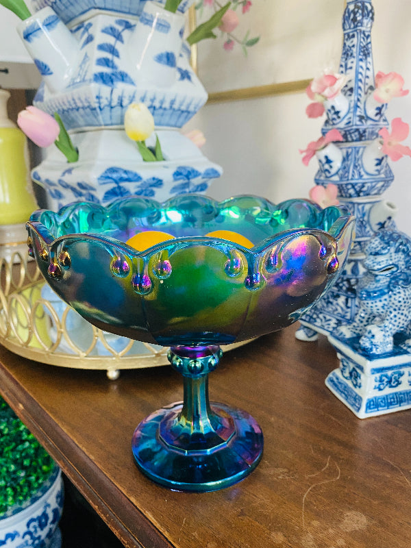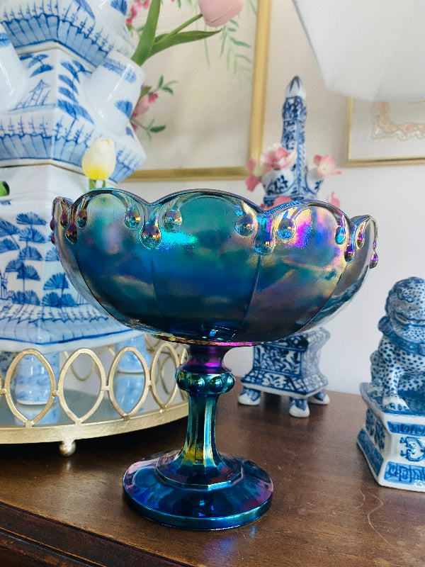 Vintage Carnival Glass Indiana Peacock Compote / Pedestal Bowl 1960s