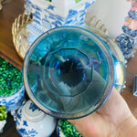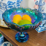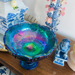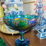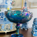 Vintage Carnival Glass Indiana Peacock Compote / Pedestal Bowl 1960s
