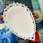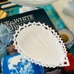 Milk Glass Trinket Dish, Lace Edged, Teardrop Shape