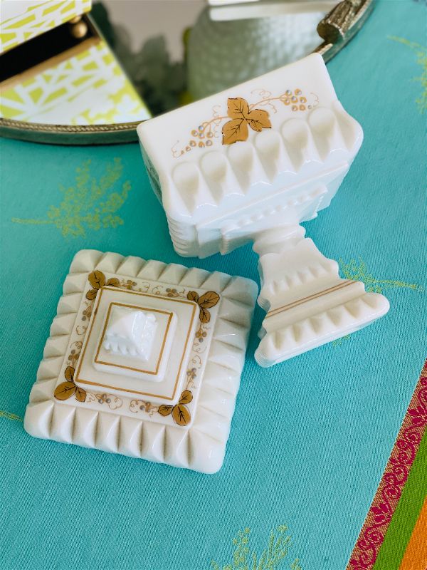Milk Glass Lidded Candy Dish, Vintage, Wedding Cake Design