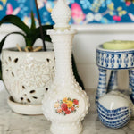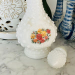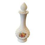 Milk glass hobnail floral perfume bottle/ decanter great vintage condition. Great to store on a vanity, or give as a gift. Add it to your milk glass collection. See picture details as they are part of the description.