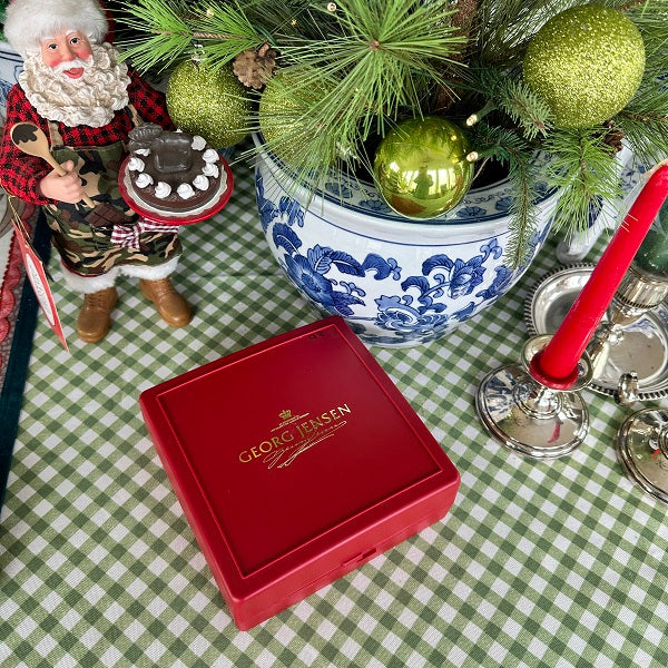 Georg Jensen was a Danish silversmith and designer who achieved international prominence for his commercial application of modern metal design. The simple elegance of his works and their emphasis on fine craftsmanship, hallmarks of Jensen’s products, are recognized around the world. Along with jewelry and silverware, he is well known for his yearly ornament collection.