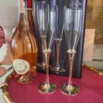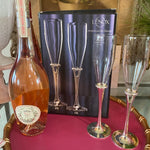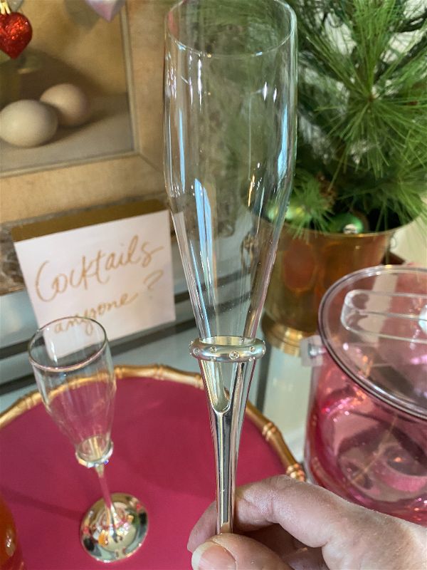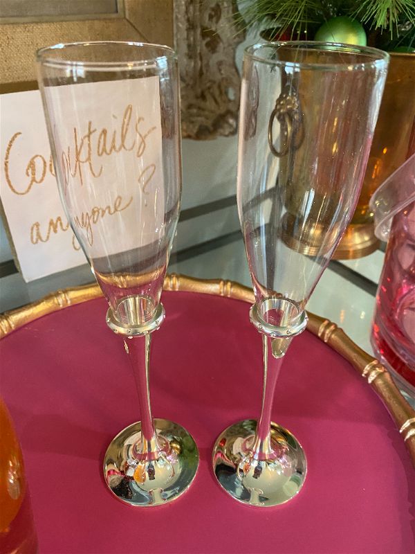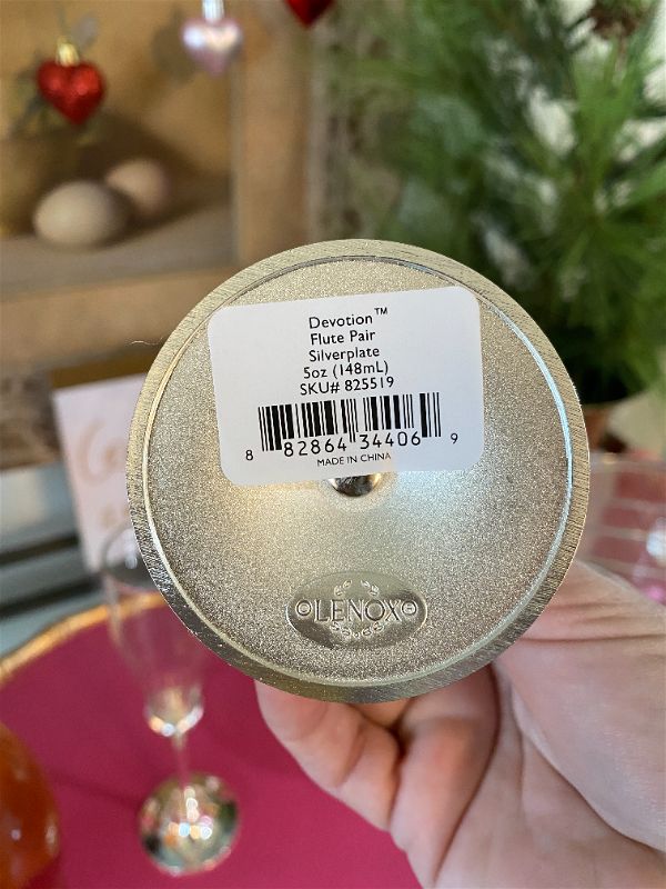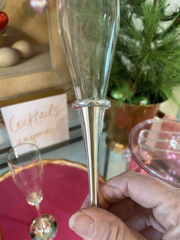 Start off your celebration with a toast in these beautiful Lenox champagne flutes. Gorgeous shaped fluted glass with silver plated stem that has a decorative diamond silver ring around the stem. Pictures don't do these justice. They are exquisite and new in the box..never used. Perfect for anniversaries, Valentines day, weddings, or showers. Make a fantastic gift for the bride and groom.