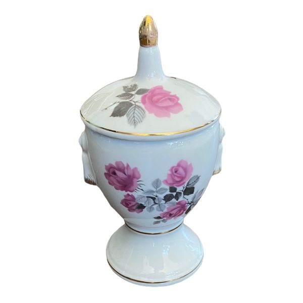 Pedestal white with pink rose gold trim apothecary jar