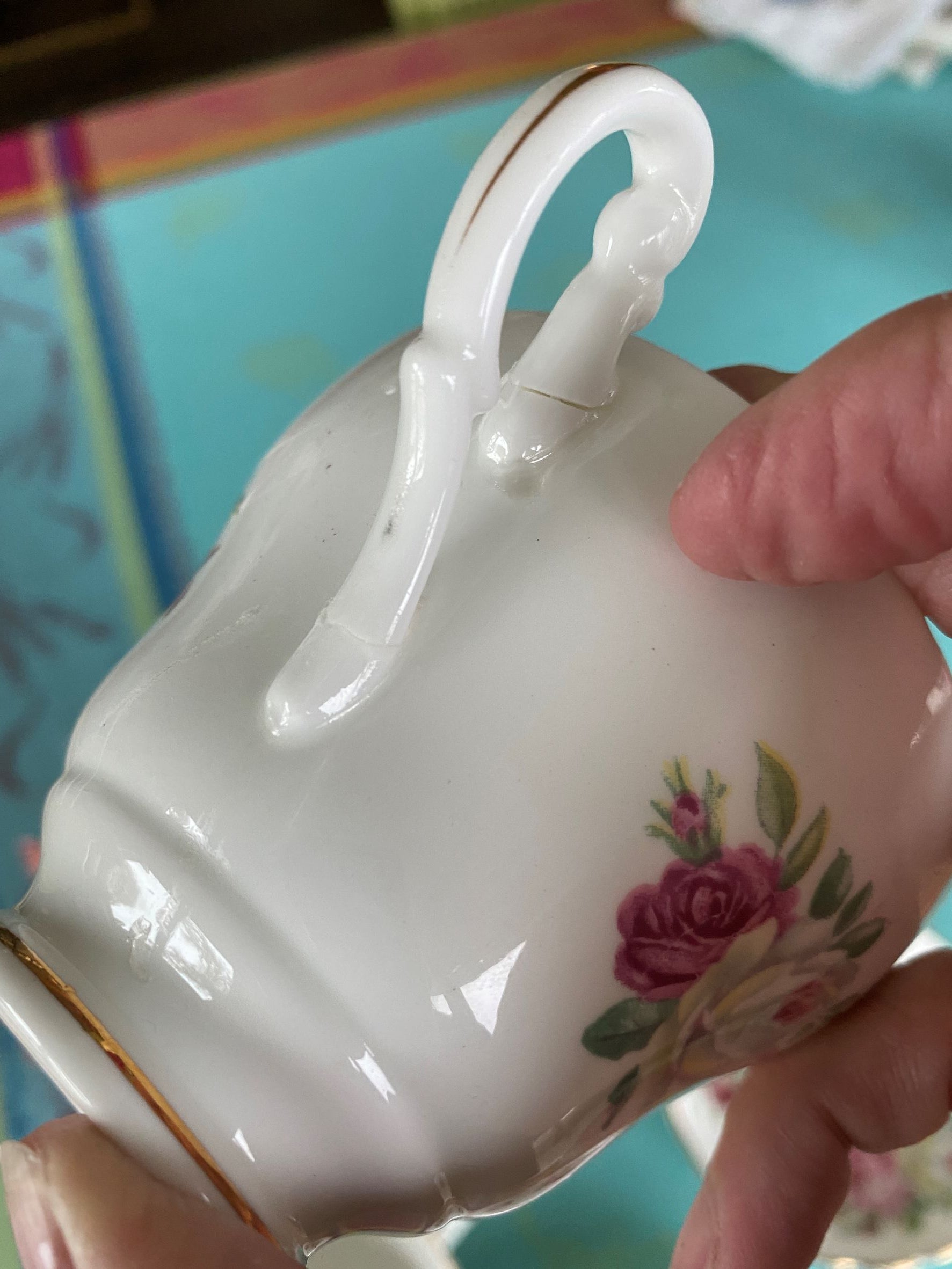 One teacup has been repaired. See picture details as they are part of the description.