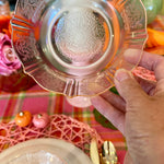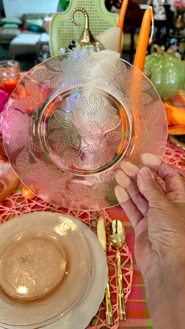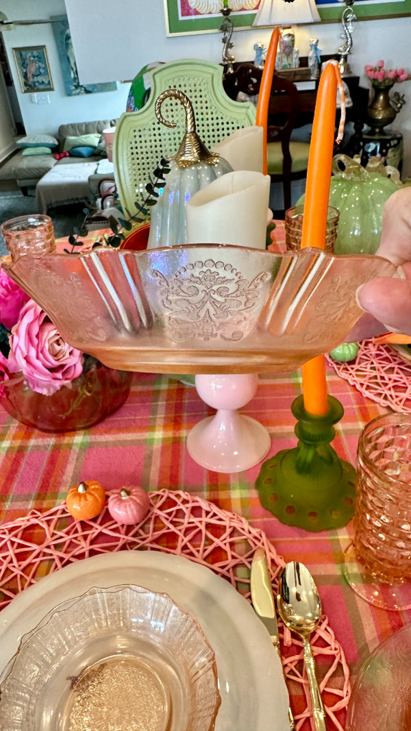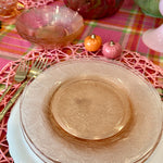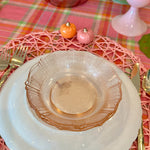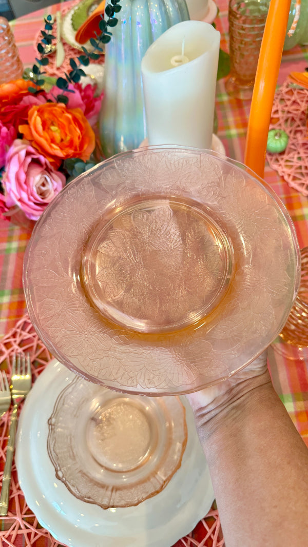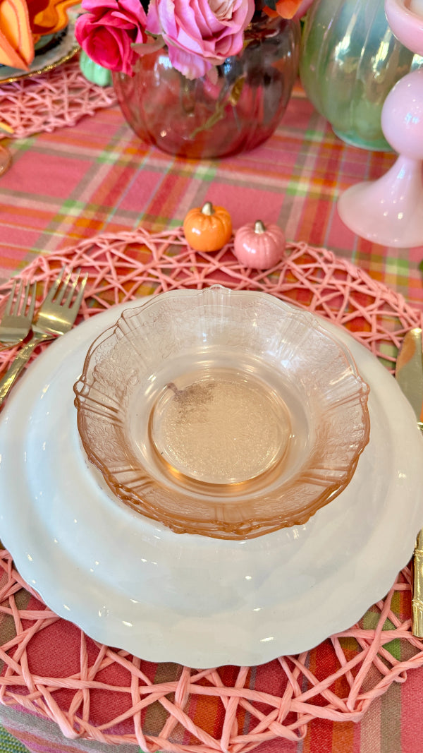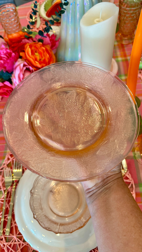 Bring vintage elegance to your table with this charming set of pink Depression glass, featuring 3 bowls and 3 salad plates. Delicately crafted with a soft pink hue, these pieces add a touch of timeless beauty to everyday meals or special occasions. Perfect for collectors or anyone looking to enhance their table setting with classic mid-century style. Durable, collectible, and utterly delightful, this set is a lovely addition to any glassware collection.
